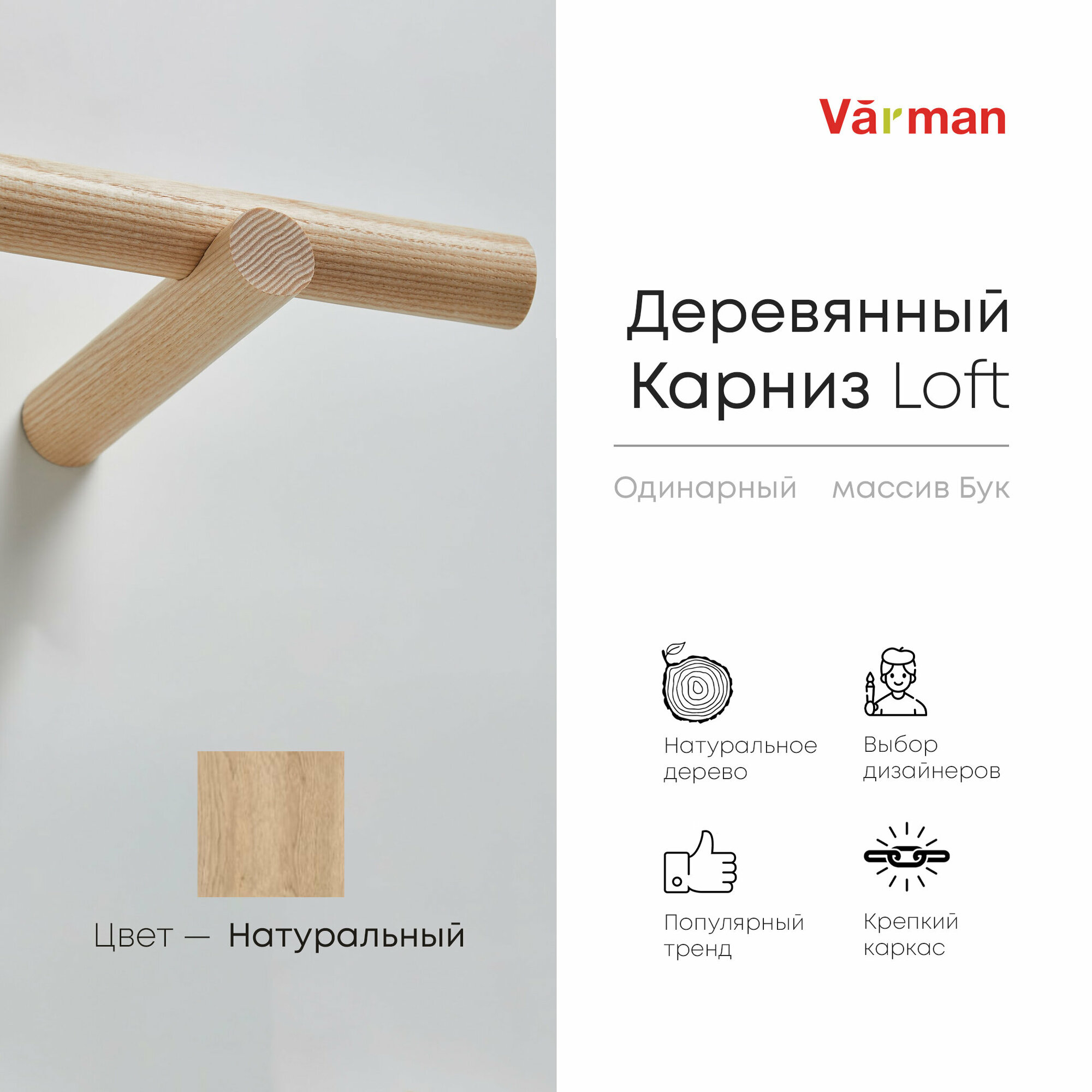 Ниже Вы можете прочитать отзывы на Карниз Loft круглый, 2000 мм, одинарный, деревянный, цвет натуральный, Varman.pro, ознакомится с подробными характеристиками, посмотреть интересные обзоры и фотографии на Карниз Loft круглый, 2000 мм, одинарный, деревянный, цвет натуральный, Varman.pro.