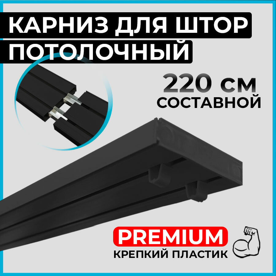 Купить Карниз потолочный пластиковый для штор двухрядный PREMIUM 220 см черный BLACK