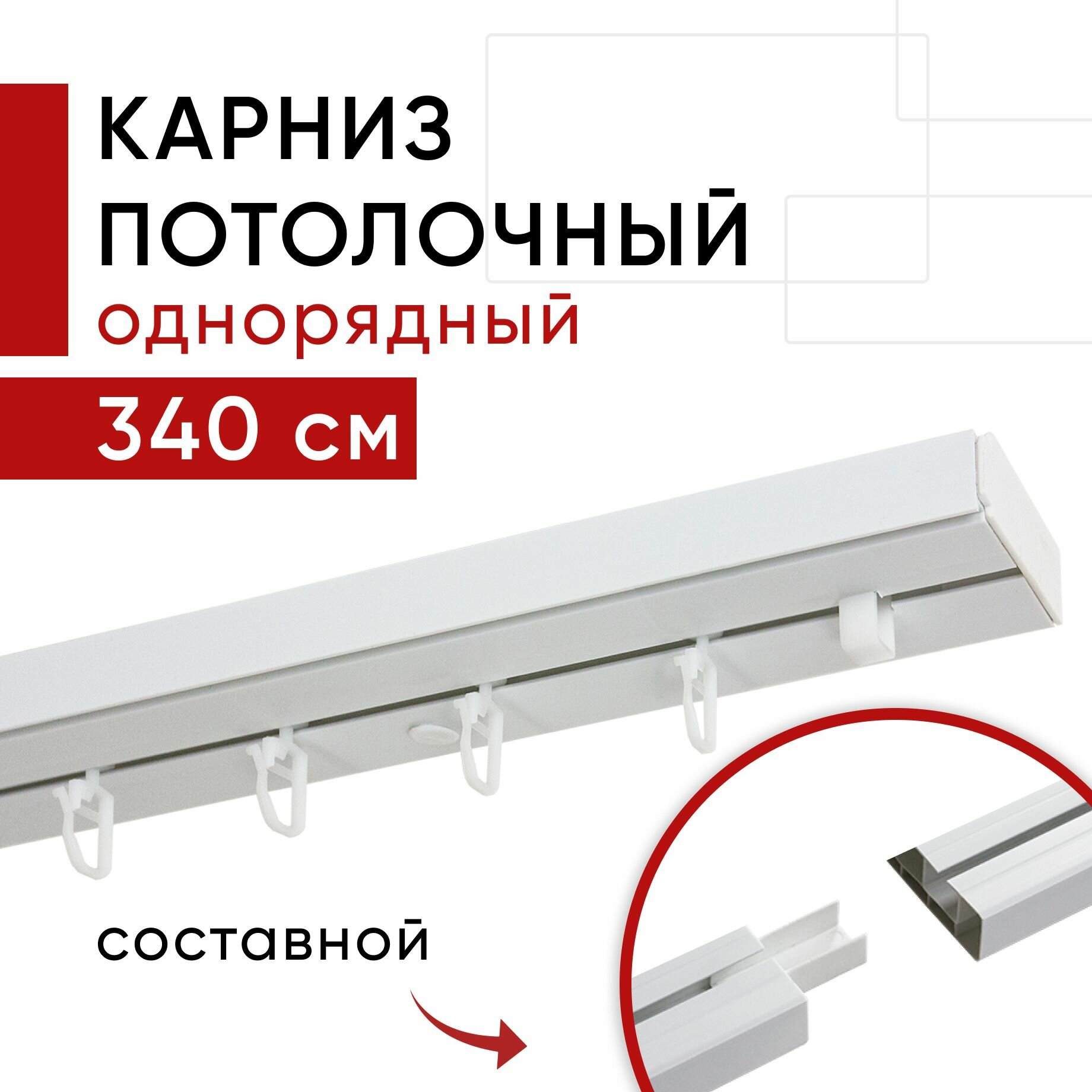 Купить Карниз потолочный для штор, Пластмассовый, Однорядный, Уют Стандарт, цвет Белый, 340см