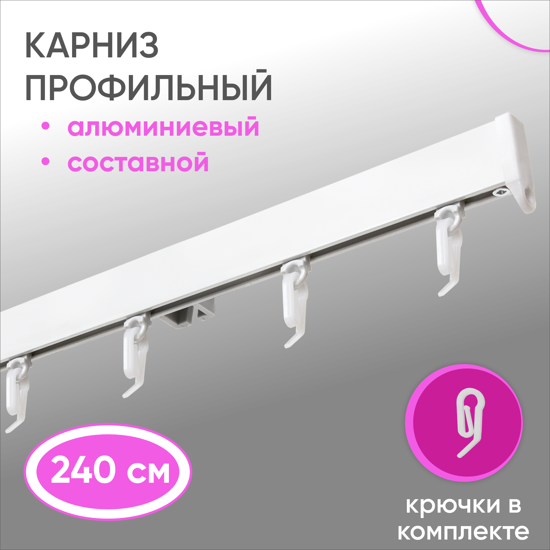 Купить Карниз для штор и гардин однорядный алюминиевый белый 240 см