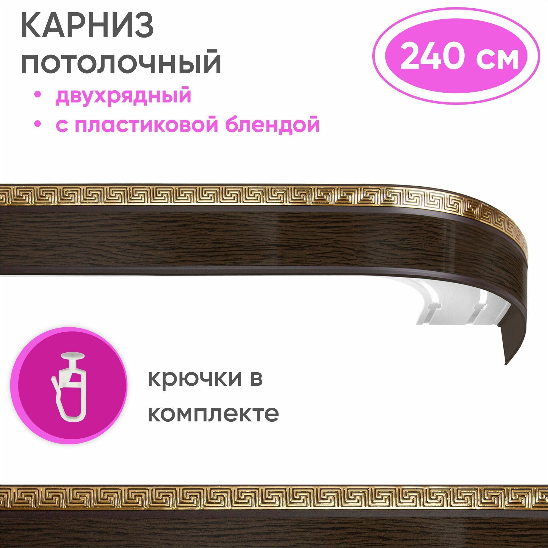Купить Карниз для штор двухрядный потолочный с планкой 55мм составной из двух частей , цвет: венге 240см