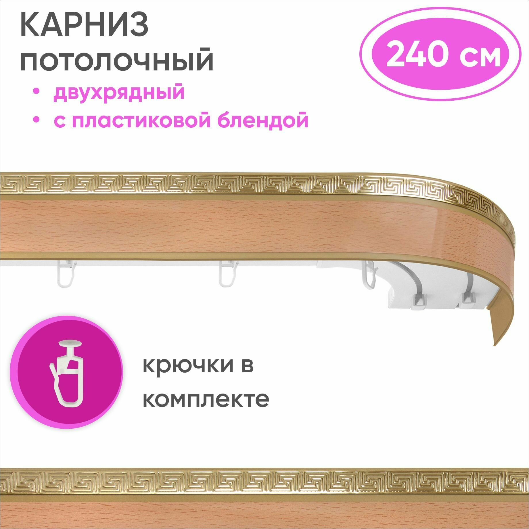 СохранитьКарниз для штор двухрядный потолочный с планкой 55мм составной из двух частей , цвет: бук 240см интересное: