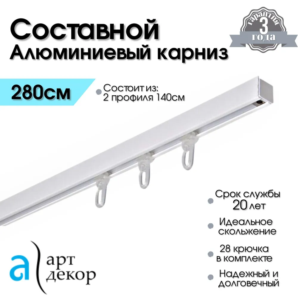 Купить Карниз для штор однорядный потолочный, настенный алюминиевый, составной, белый 280 см / Металлический шинный для натяжных потолков / Гардина для скрытой установки
