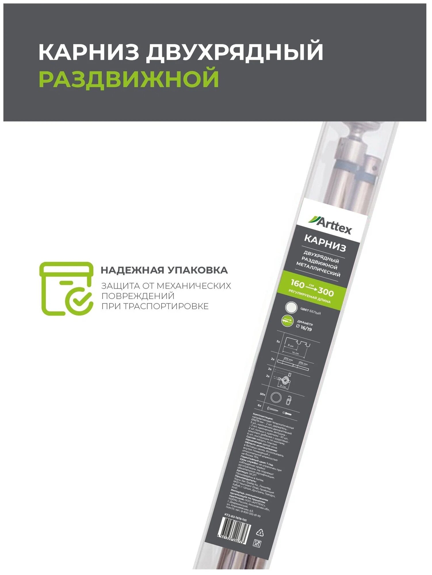 Купить Карниз металлический Arttex Телескоп двухрядный 15.101 диаметр 16/19, белый, 160/300