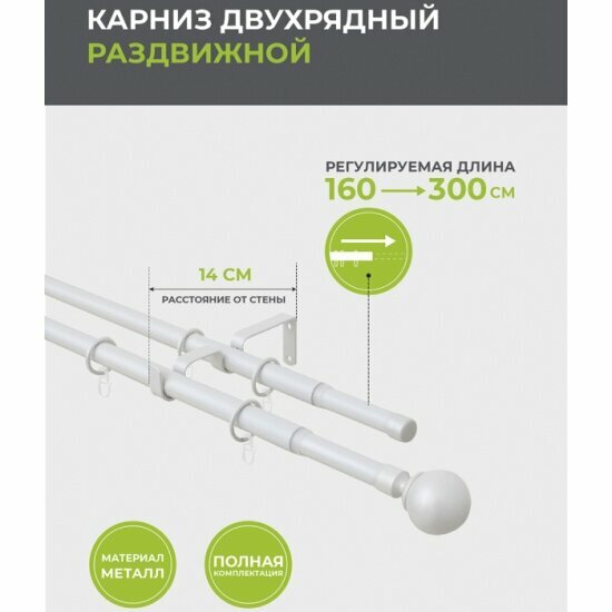 СохранитьКарниз для штор двухрядный (2 ряда) металлический 300 см, Жемчуг. Телескоп диаметр 16/19 мм; длина 160/300 см. 15.689 интересное: