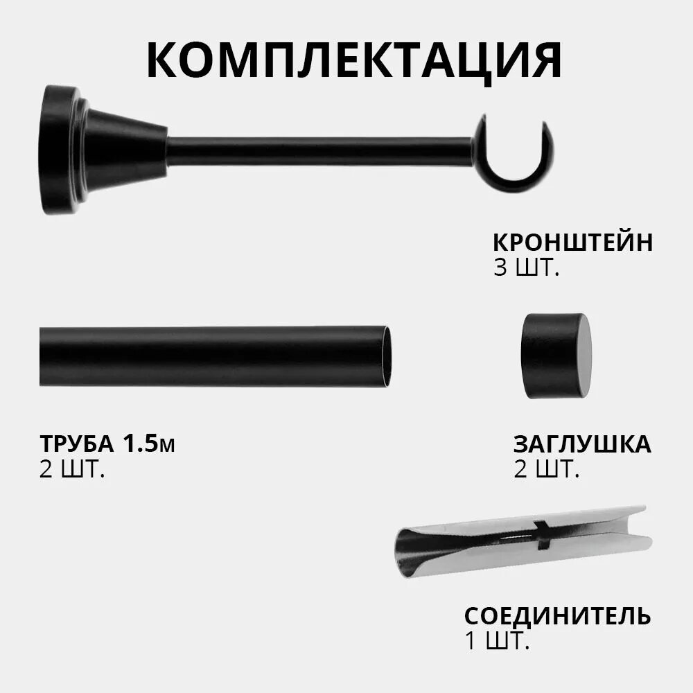 | Комплектация | труба для карниза 1,6м 2 шт, кронштейн для карниза 3 шт, наконечник для карниза заглушка 2 шт, соединитель для карниза 1 шт |