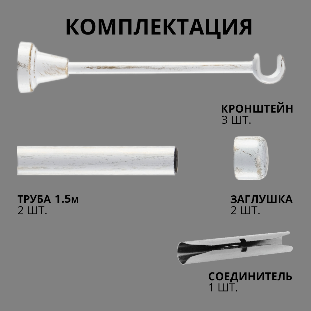 | Комплектация | труба для карниза 1,6м 2 шт, кронштейн для карниза 3 шт, наконечник для карниза заглушка 2 шт, соединитель для карниза 1 шт |
