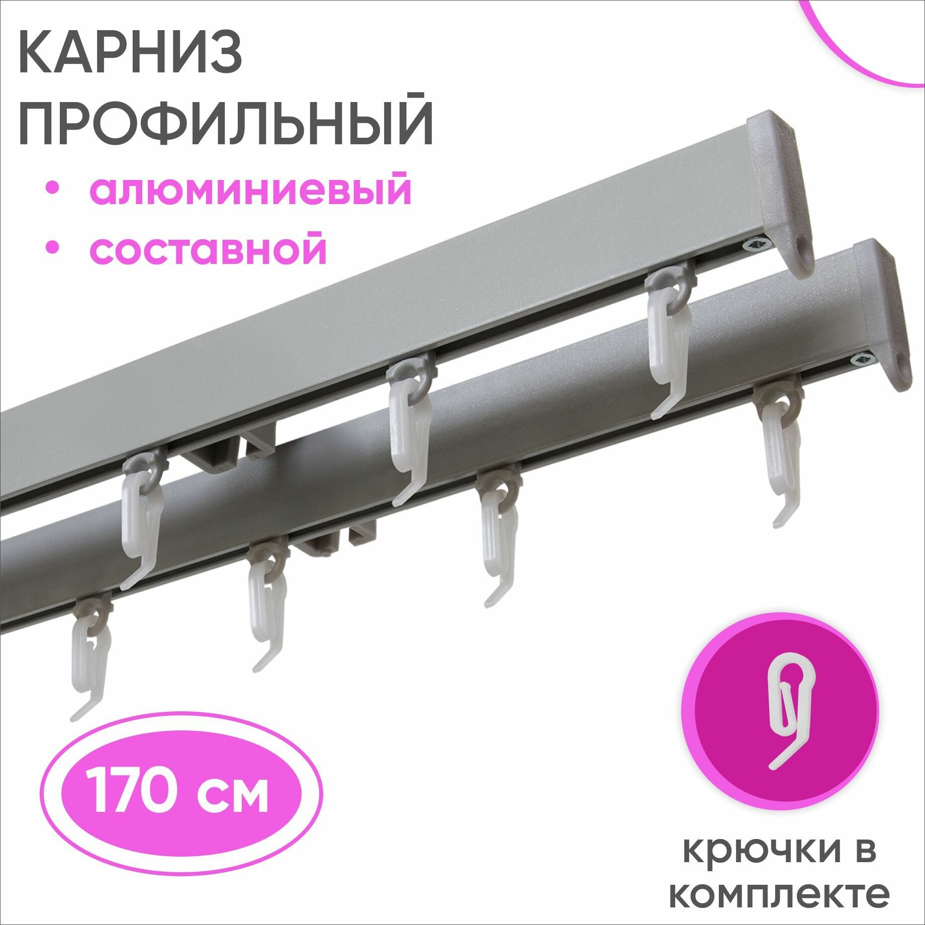 Купить Карниз для штор и гардин двухрядный алюминиевый серебристый 170 см
