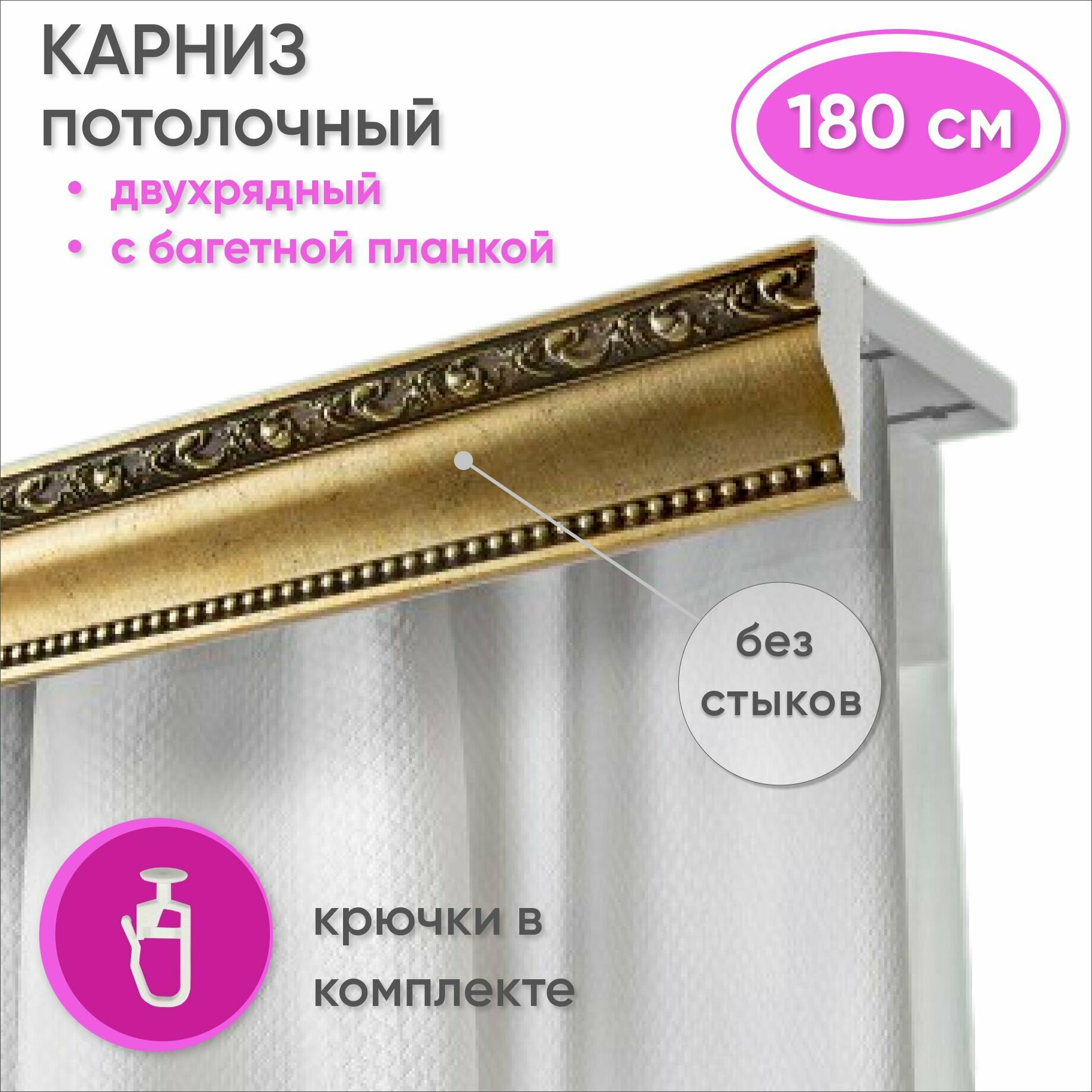 Купить Карниз для штор и гардин двухрядный потолочный с багетной планкой 180 см, цвет Античное золото