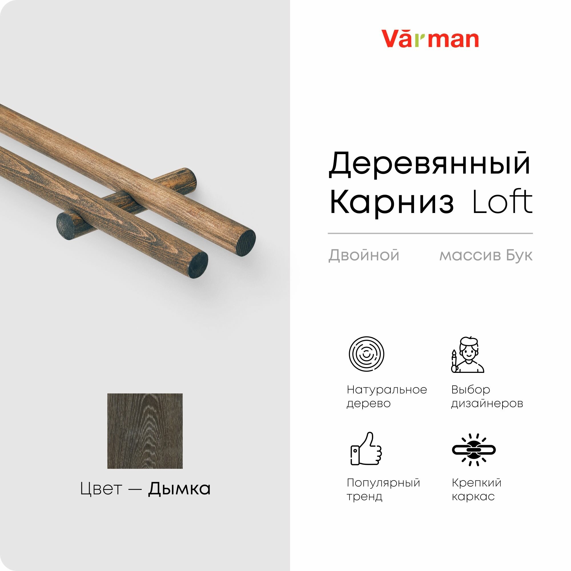 Карниз Loft круглый, 1500 мм, двойной, деревянный, цвет дымка, Varman.pro