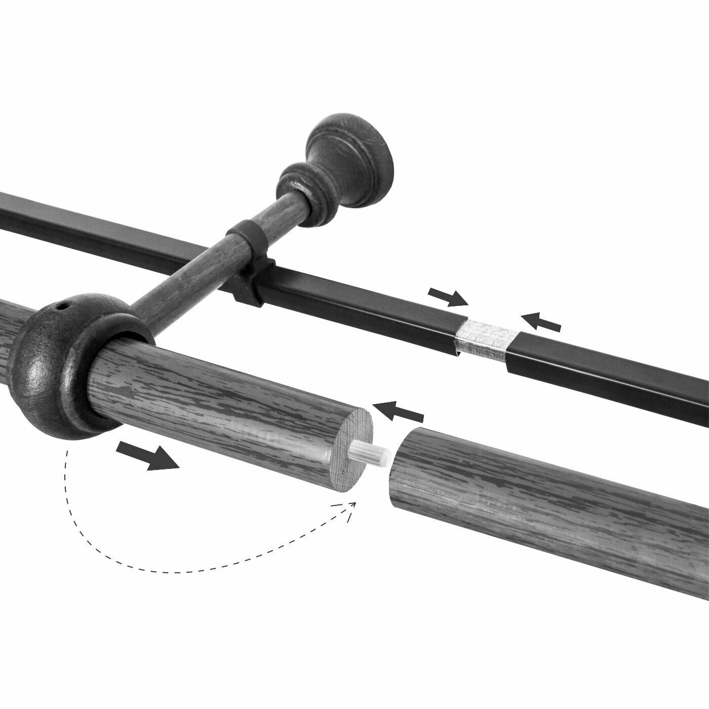 | Комплектация | Штанга составная - 1шт; Кронштейны - 3шт; Кольца с крючком - 1шт на 10см; Направляющая под тюль (составная) - 1шт; Наконечники и заглушки (на второй ряд) - по 2шт; Комплект саморезов и дюбелей - 1уп; Инструкция по установке - 1шт |
