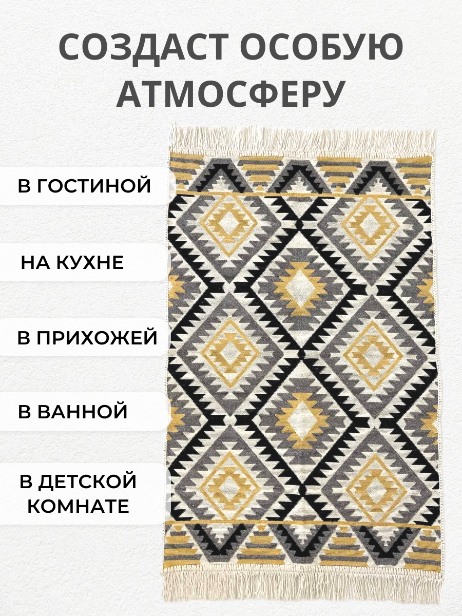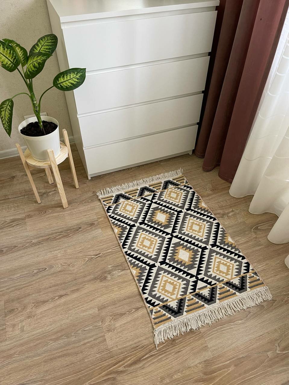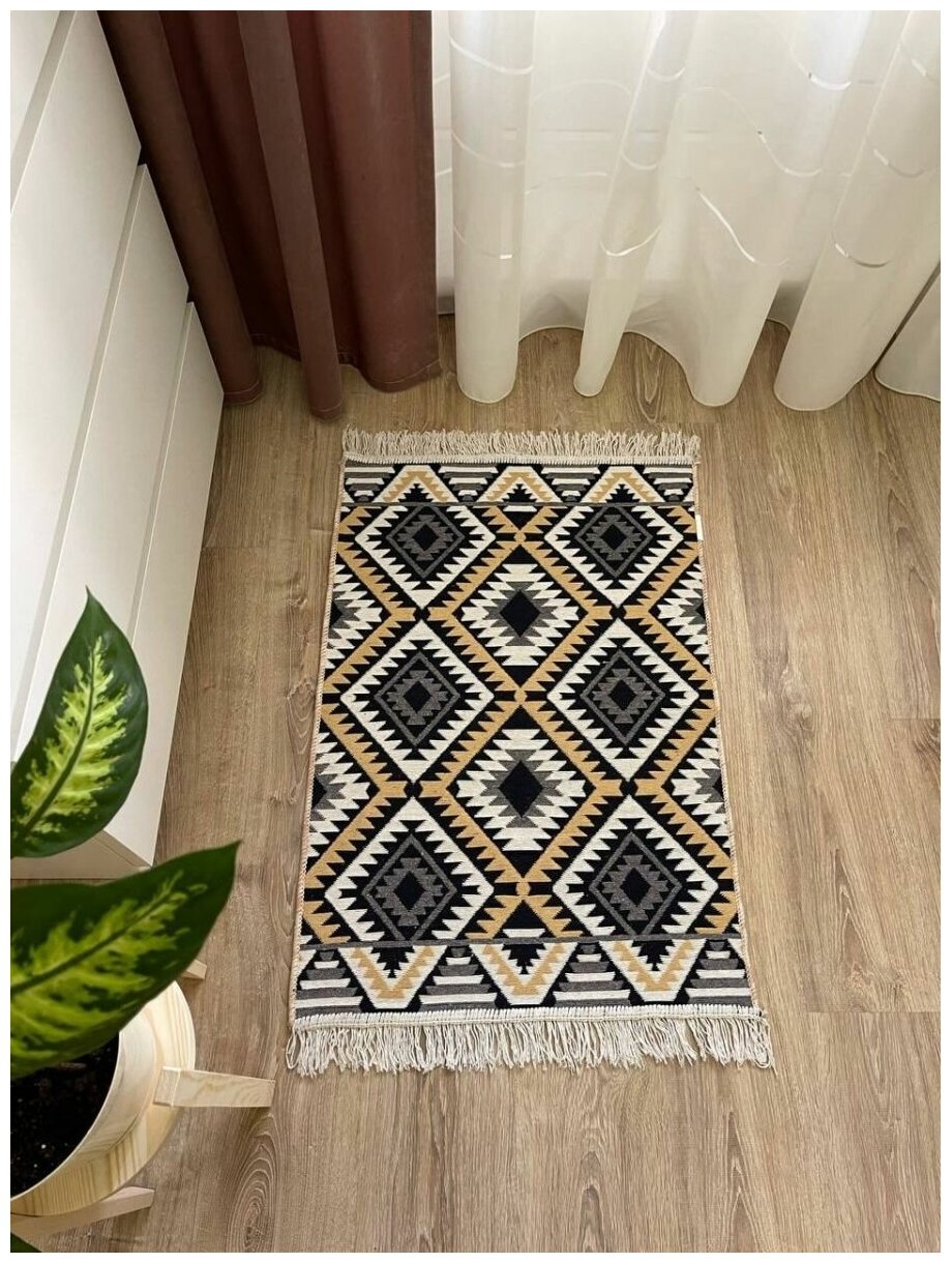 Купить Коврик комнатный хлопковый 60 см на 90 см / экокилим турецкий / прикроватный коврик / двусторонний придверный коврик / гипоаллергенный коврик в детскую Musafir Home