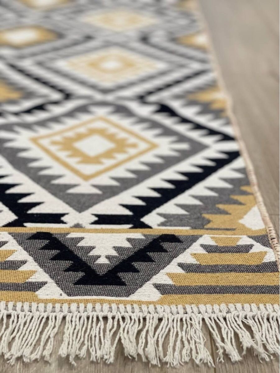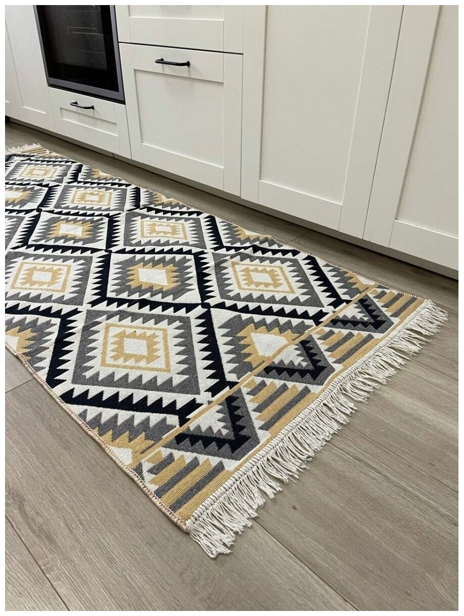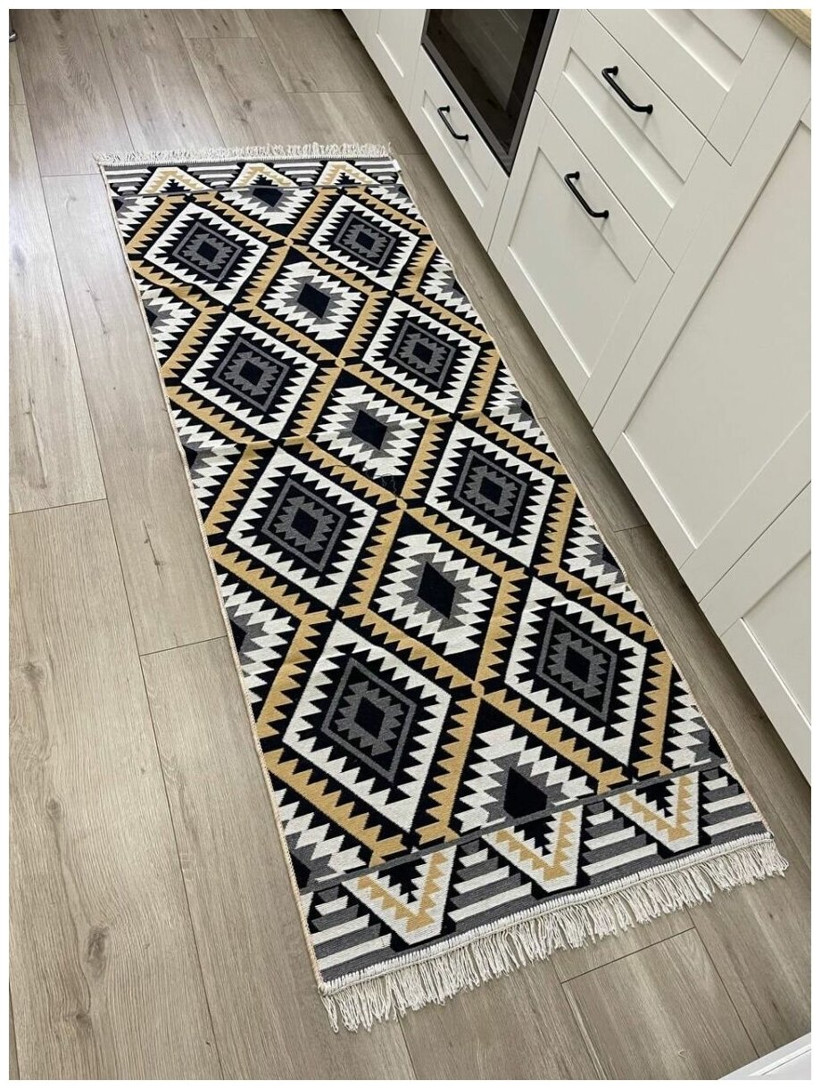 Турецкая хлопковая дорожка с геометрическим принтом 80 х 200 см Musafir Home / безворсовый комнатный ковер интересное: