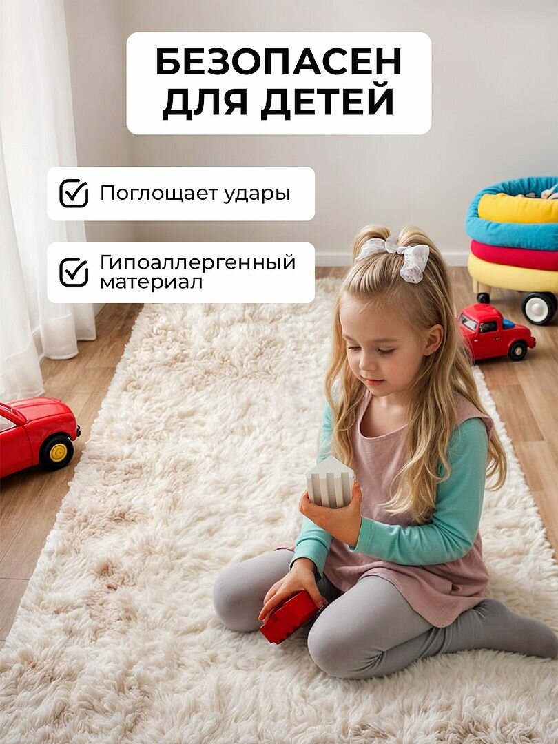 Ковер на пол с ворсом Classmark комнатный, пушистый, 160х200 см, материал изделия 100% полиэстер, основа коврика ПВХ, мягкий и антискользящий, белый