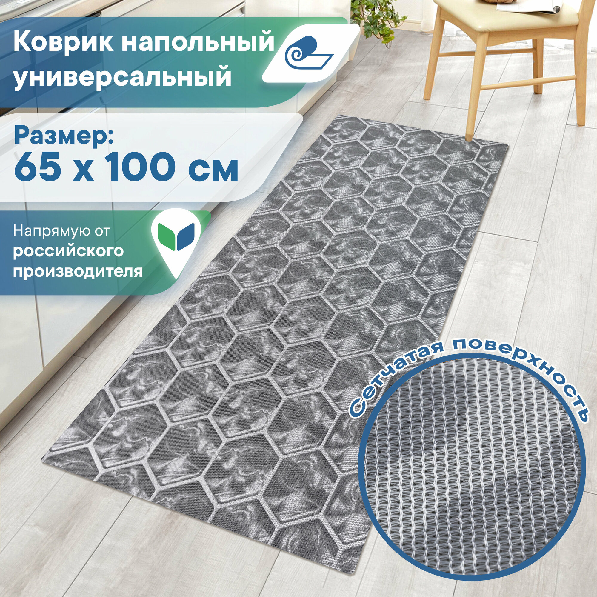 СохранитьКоврик мягкий напольный VILINA безворсовый противоскользящий в комнату 65х100 "Элемент" серый интересное: