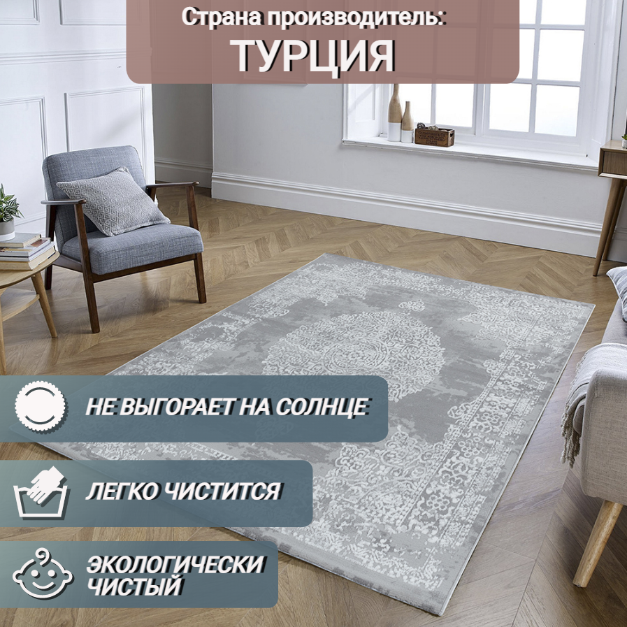 СохранитьКовер на пол 160 на 230 (1.6 на 2.3) в спальню гостиную детскую на кухню в комнату серый Sofia Rugs LARA 4435B Турция интересное: