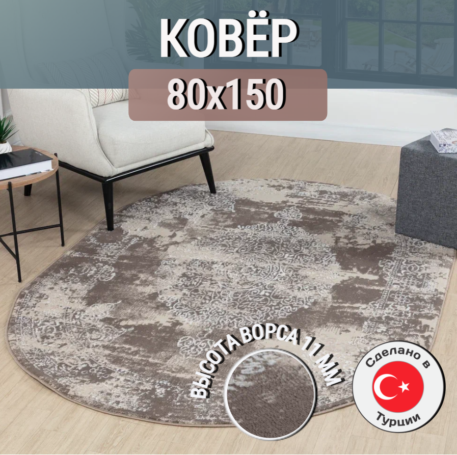 Ковер на пол овальный 80 на 150, серый, современный, Турция, The Sofia Rugs, 4435B
