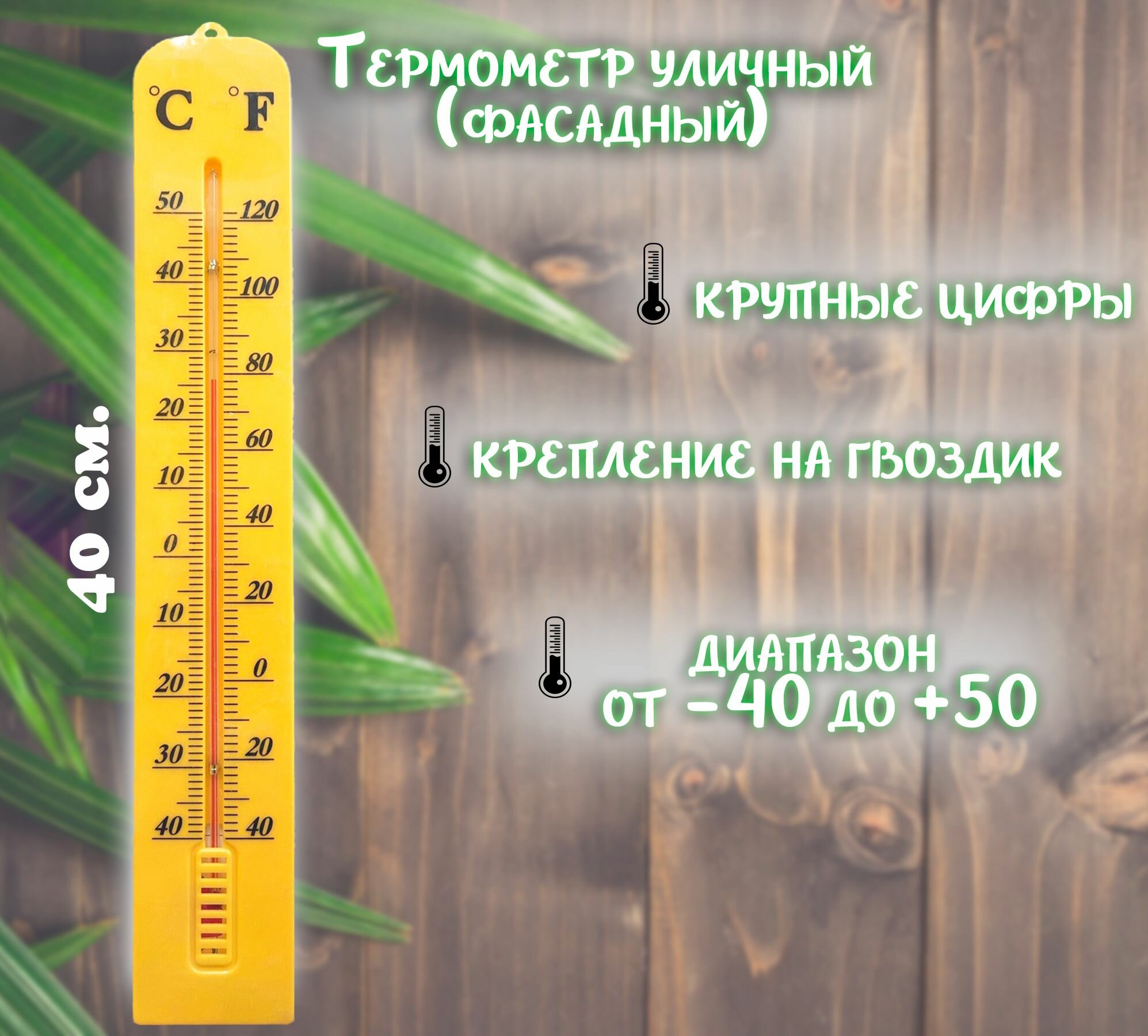 Термометр уличный АМ-195, цвет желтый / Термометр фасадный 40х6,5 см. интересное: