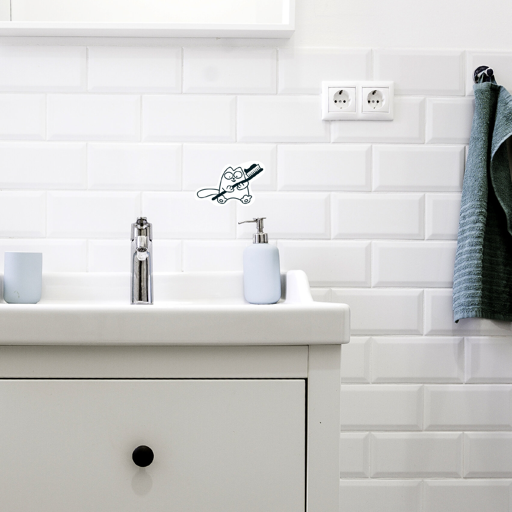 Купить Наклейки детские интерьерные напоминалки чистить зубы в ванную, в санузел прикольный кот саймон