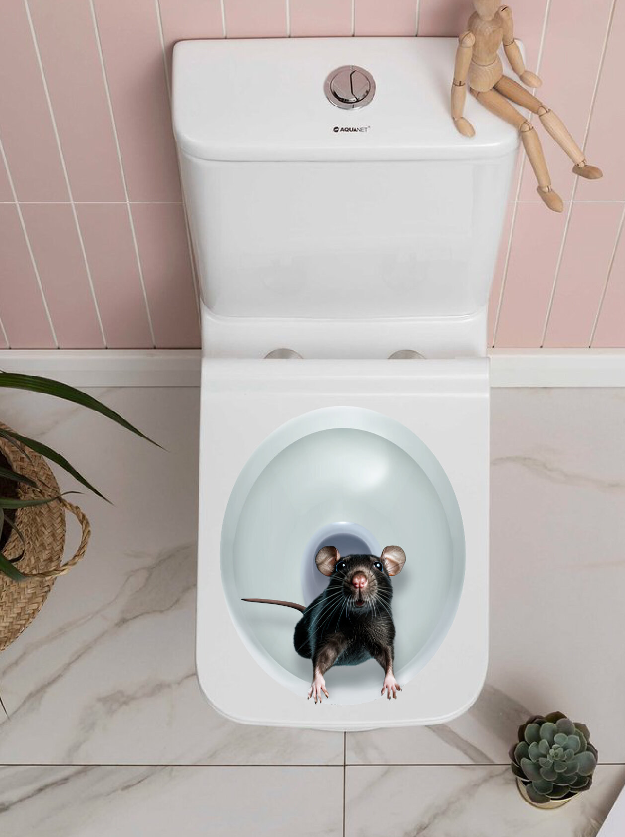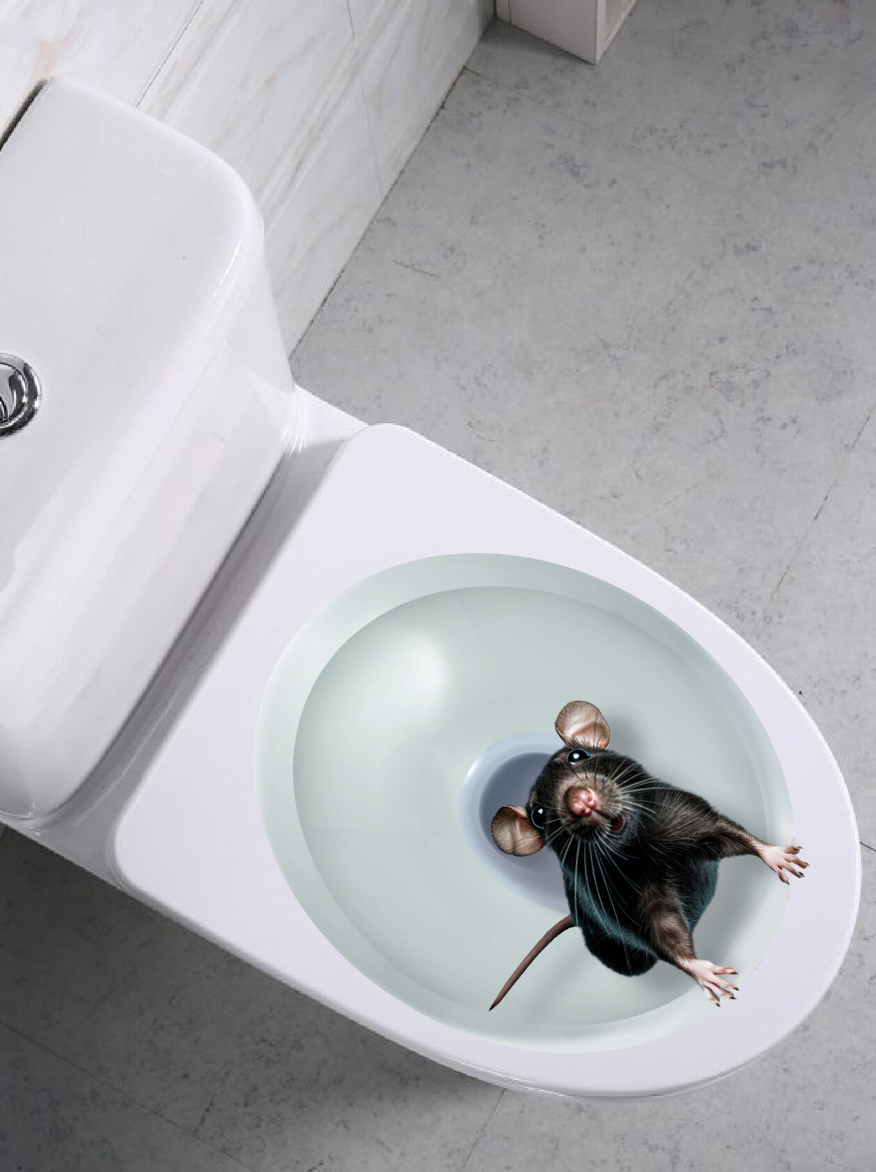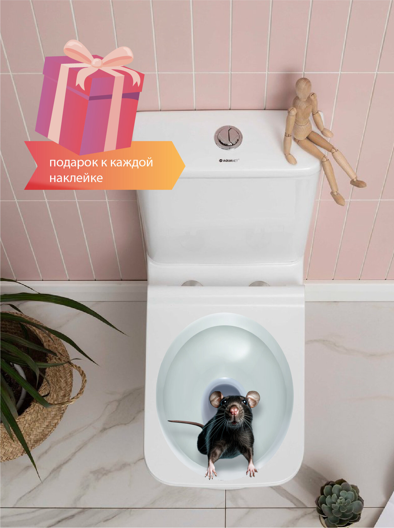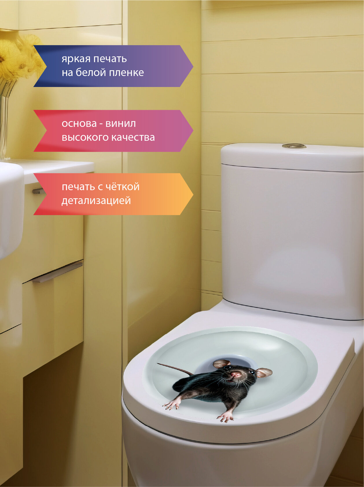 Забавные наклейки для декора интерьера туалета дома, на даче, в бане крыса в унитазе интересное: