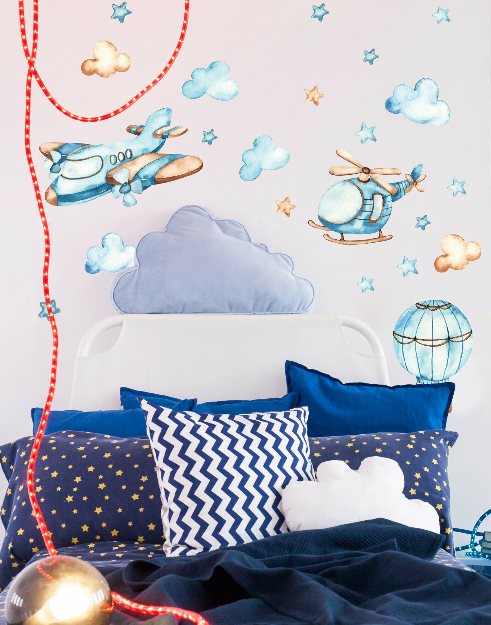 Купить Наклейки воздушный транспорт самолет, вертолет, аэроплан, воздушный шар в облаках