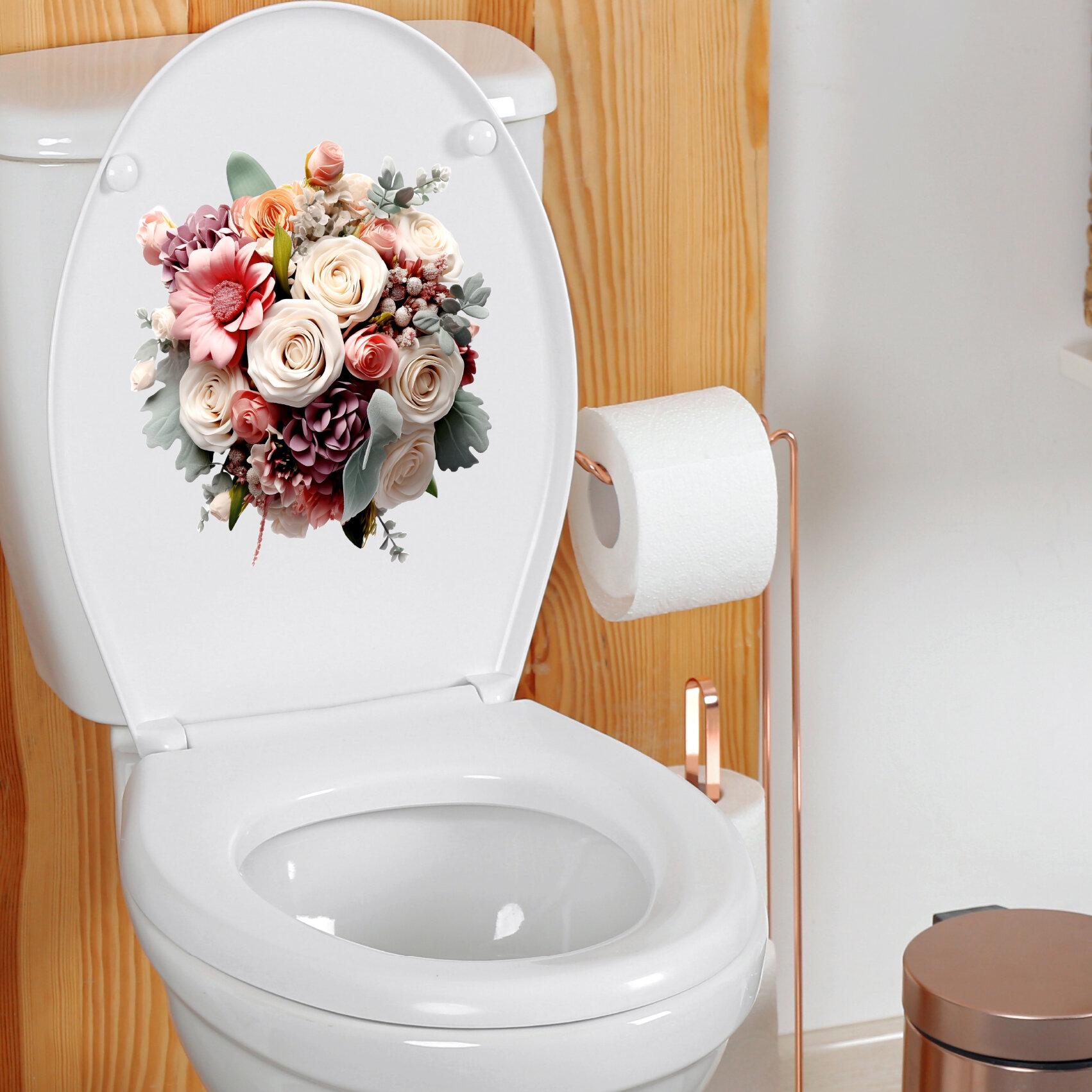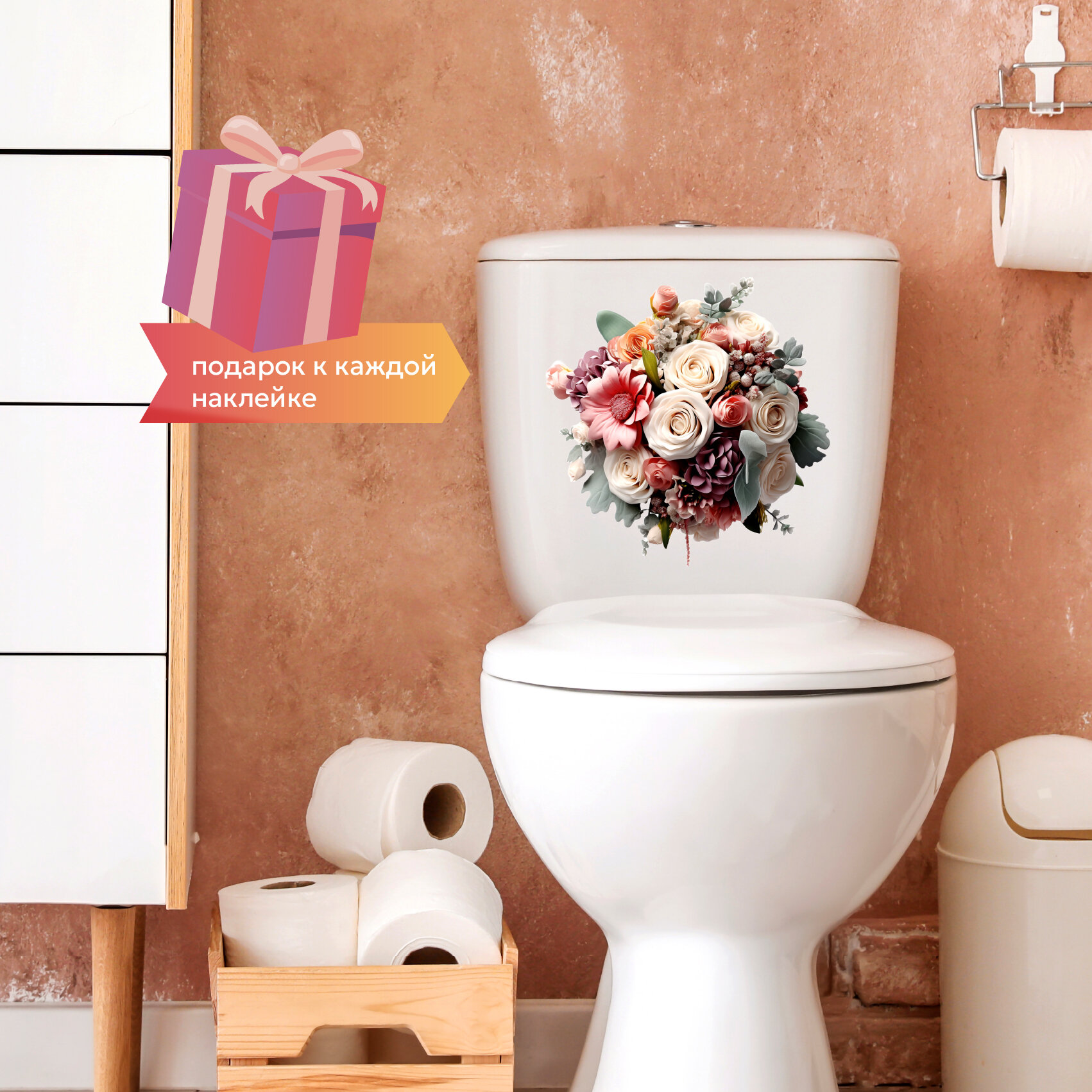 Интерьерная красивая наклейка на унитаз, на холодильник, на шкафчик, на дверь , на зеркало букет цветов