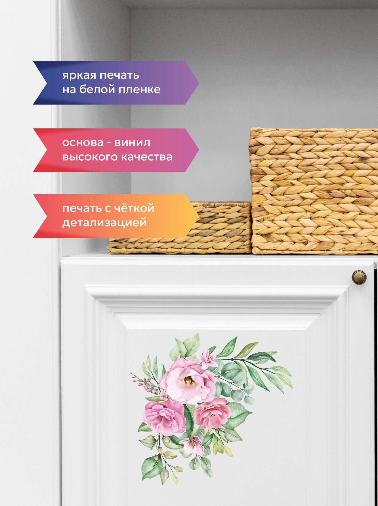 Купить Красивые самоклеящиеся интерьерные наклейки для дома, для дачи, для бани на фасад кухни, на холодильник, на унитаз цветы