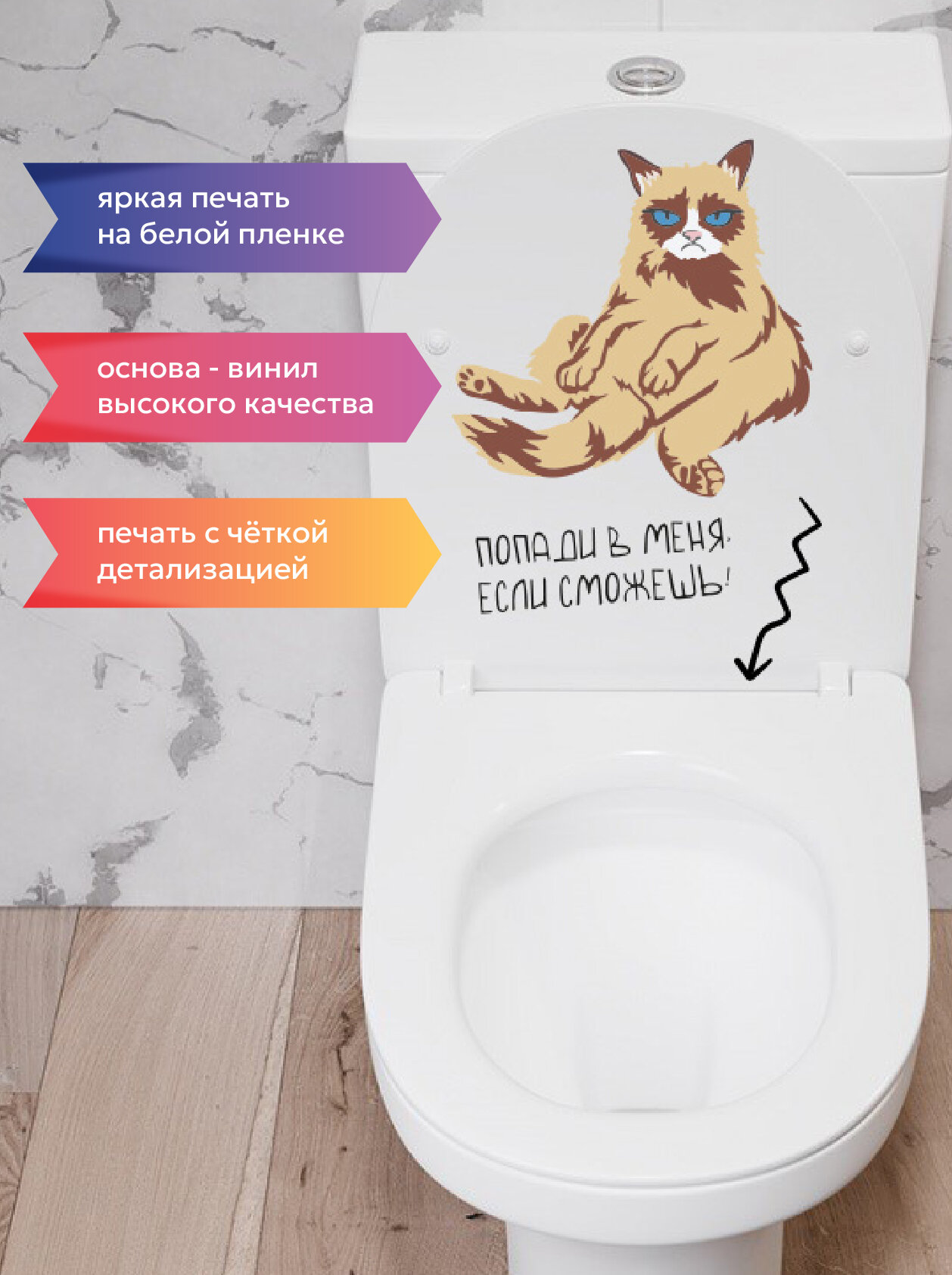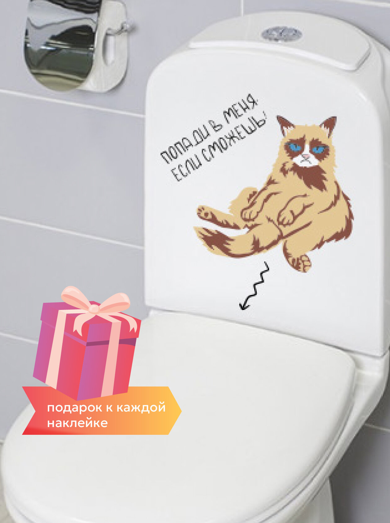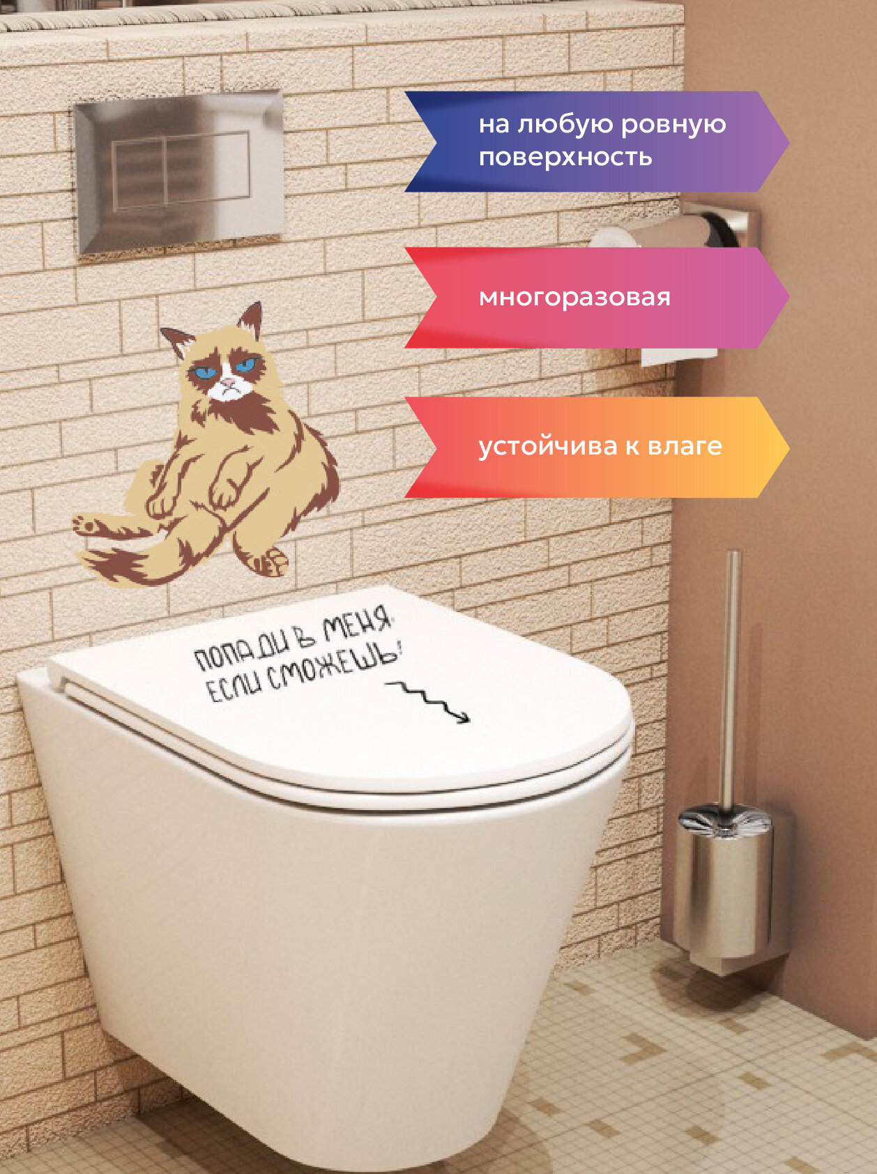 Наклейки на унитаз - готовое решение для интерьера цветной кот Попади в меня