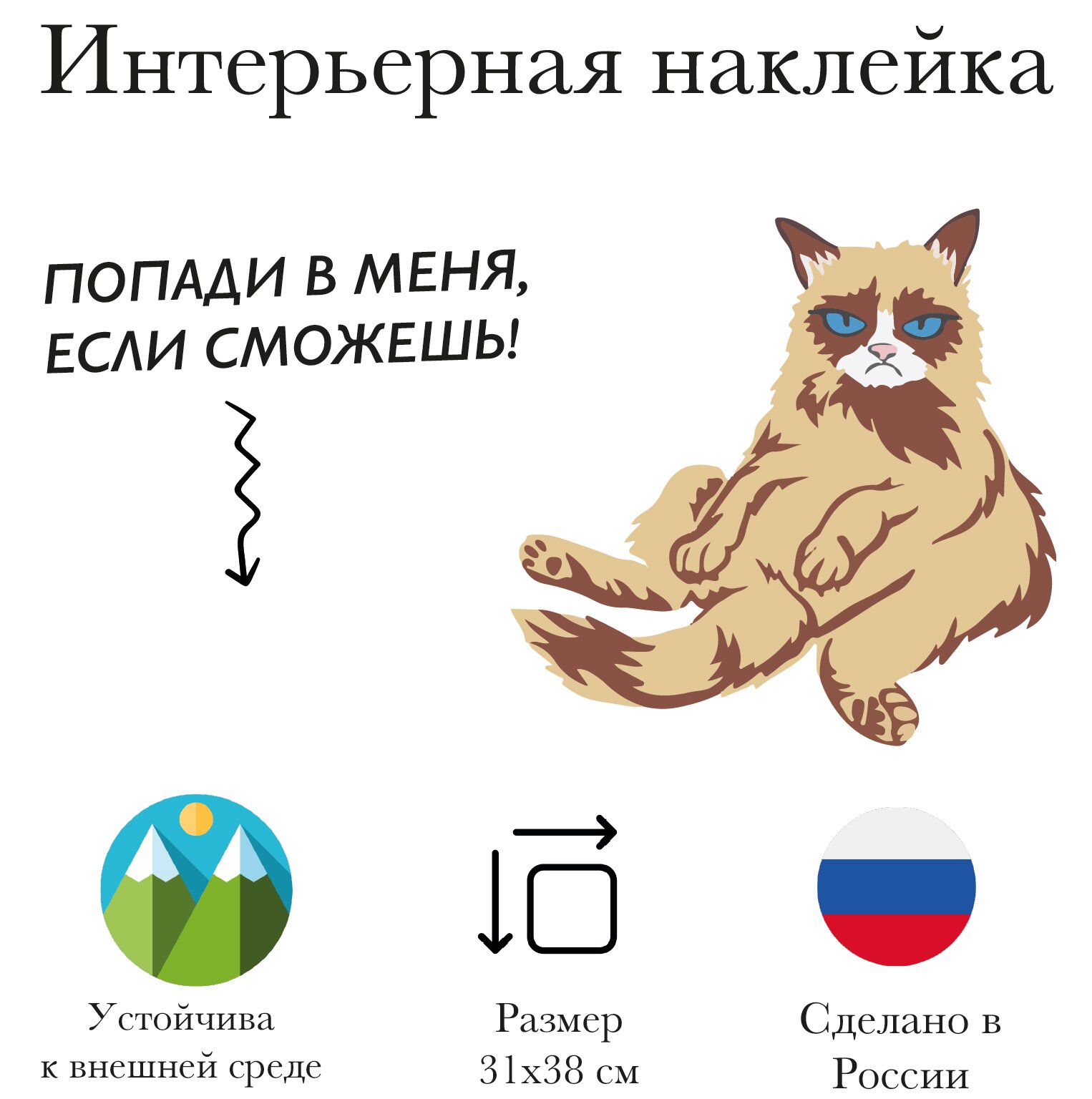 Классные наклейки с приколом в дом, на дачу на холодильник, дверь, авто или унитаз - кот царапка
