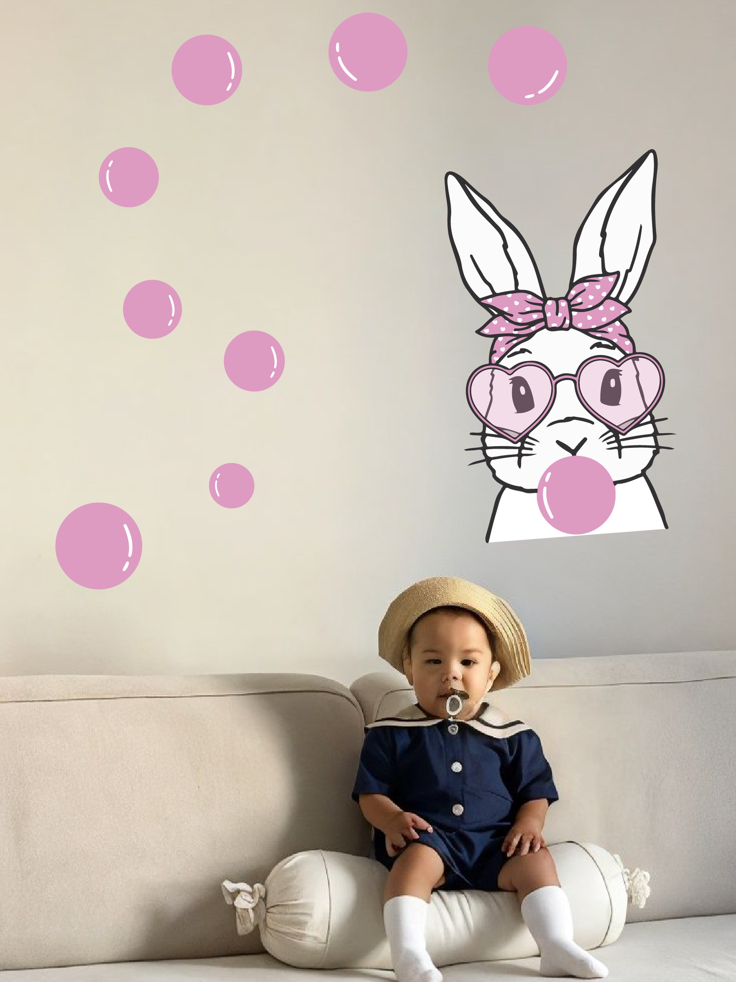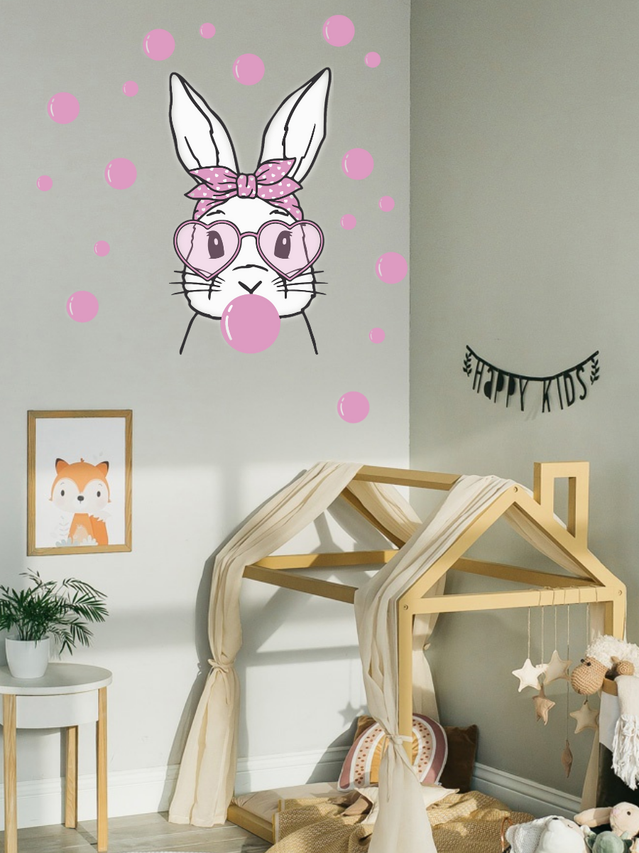 Купить Большая интерьерная наклейка для оформления детской комнаты, замена фотообоям Зайка с пузырями