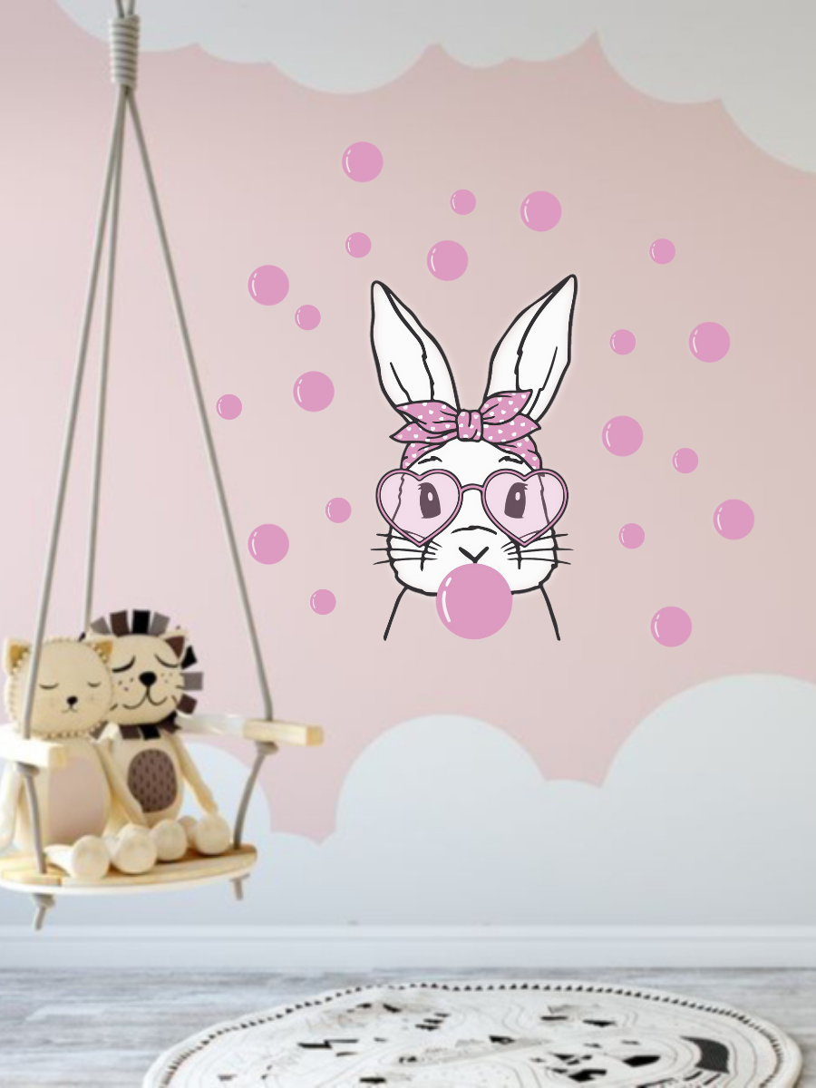 Большая интерьерная наклейка для оформления детской комнаты, замена фотообоям Зайка жует жвачку