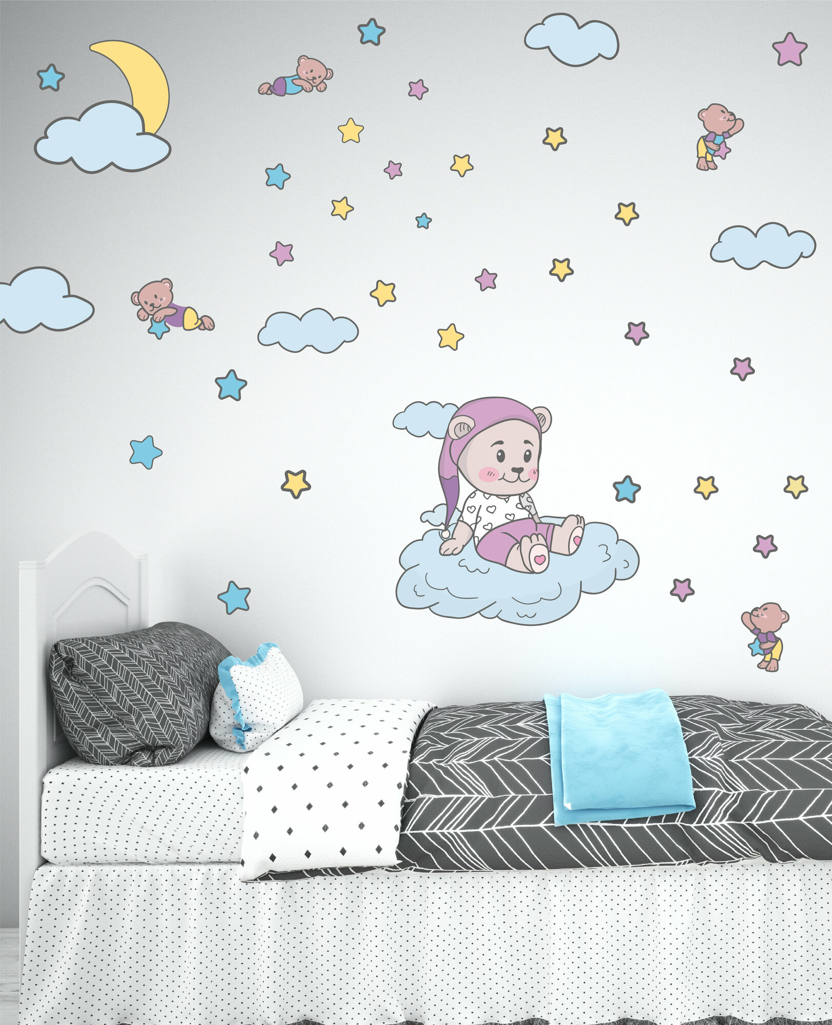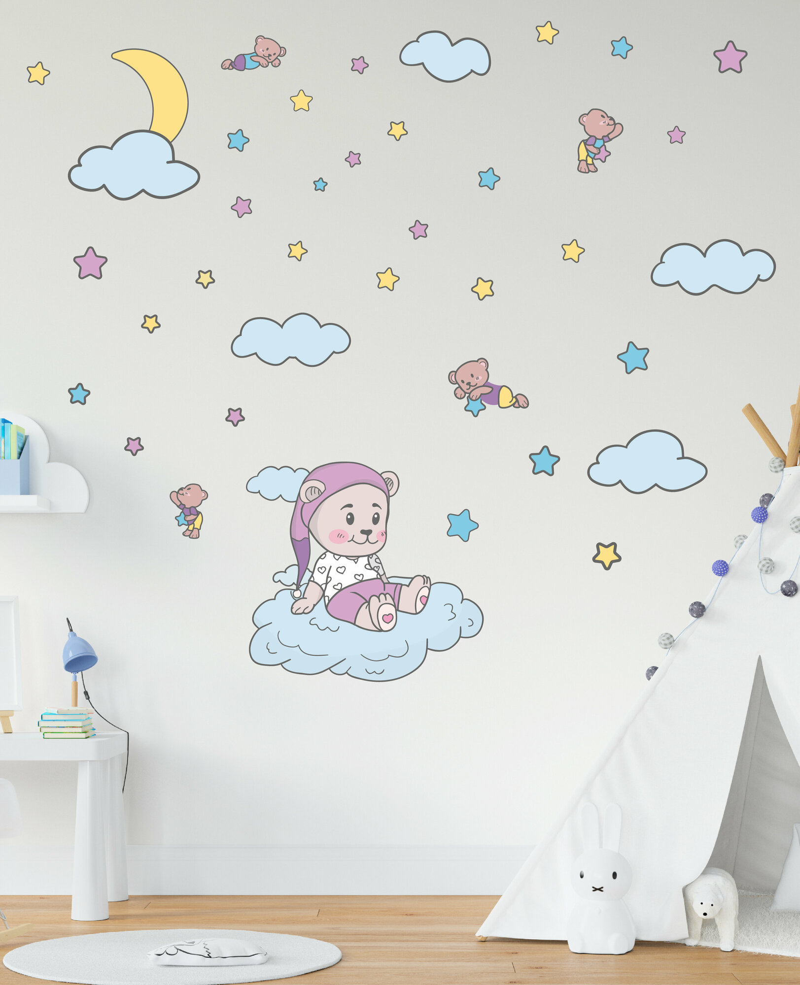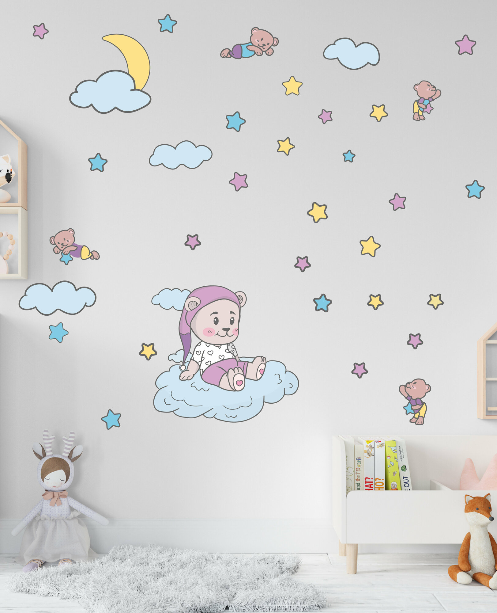 Купить Большие интерьерные наклейки на стену детская мишка звезды медвежонок в облаках