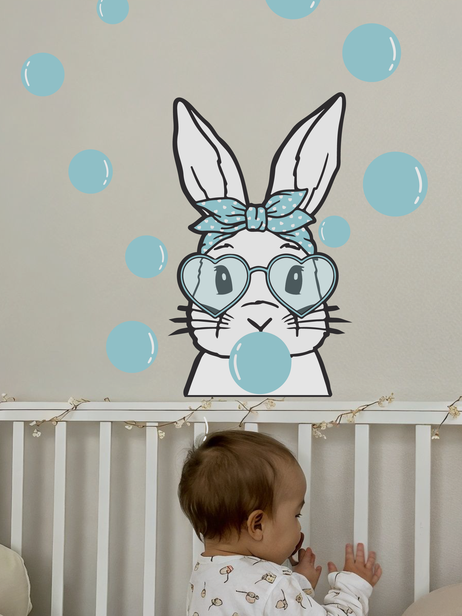 Купить Большая интерьерная наклейка для оформления детской комнаты, замена фотообоям Зайка жует жвачку