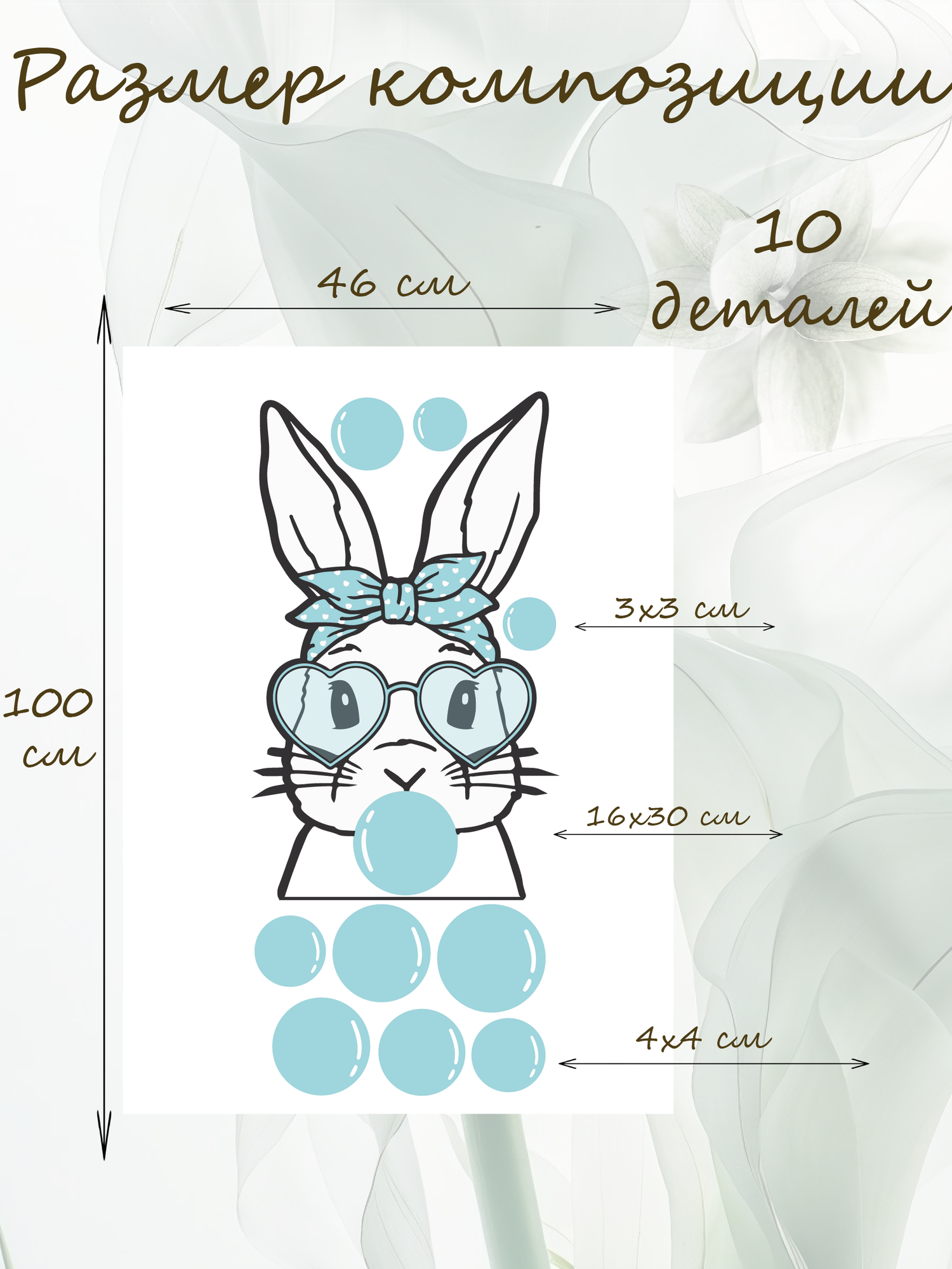Большая интерьерная наклейка для оформления детской комнаты, замена фотообоям Зайка с пузырями
