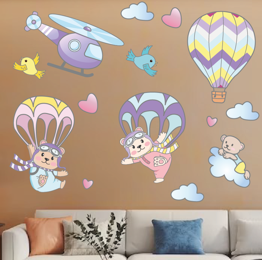 Большие интерьерные наклейки для декора детской на стену Полет на воздушном шаре