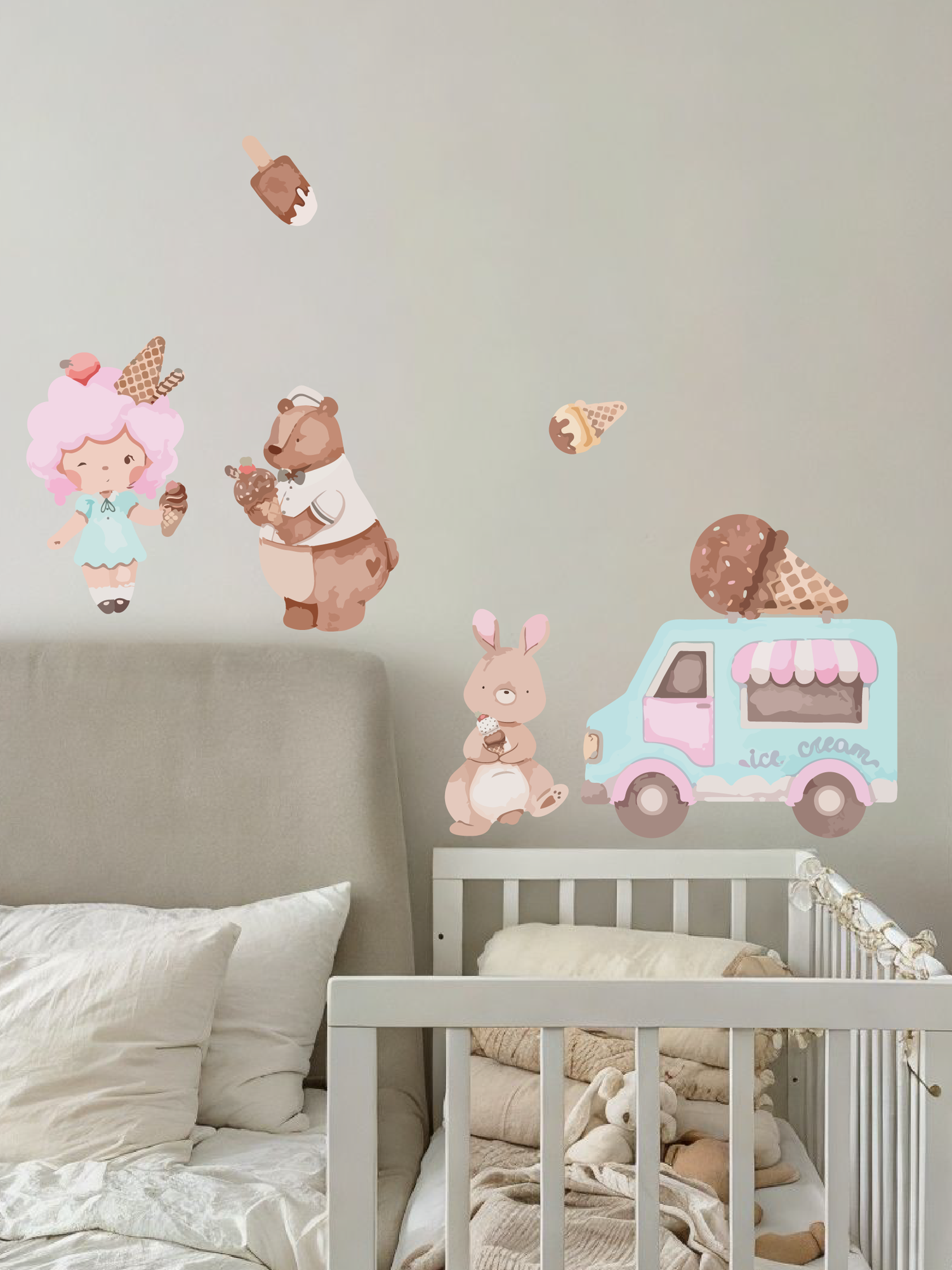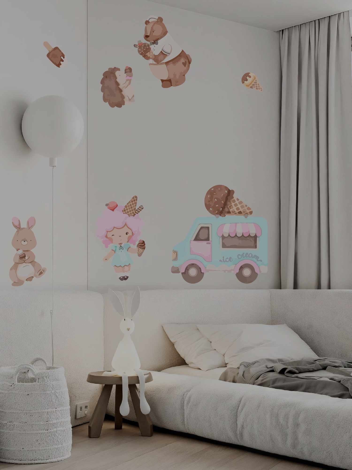 СохранитьБольшие интерьерные наклейки в детскую комнату веселый мороженщик мороженое интересное: