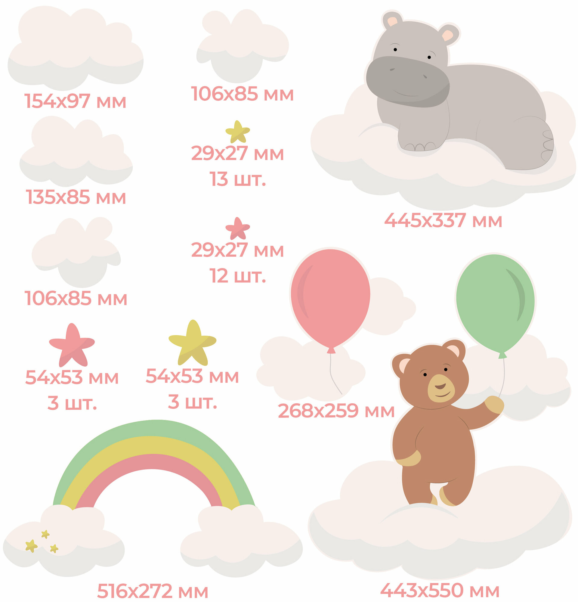 Интерьерные наклейки самоклеящиеся для декора дома и дачи на стену в детскую/ спальню/ игровую комнату звери летят на воздушных шарах