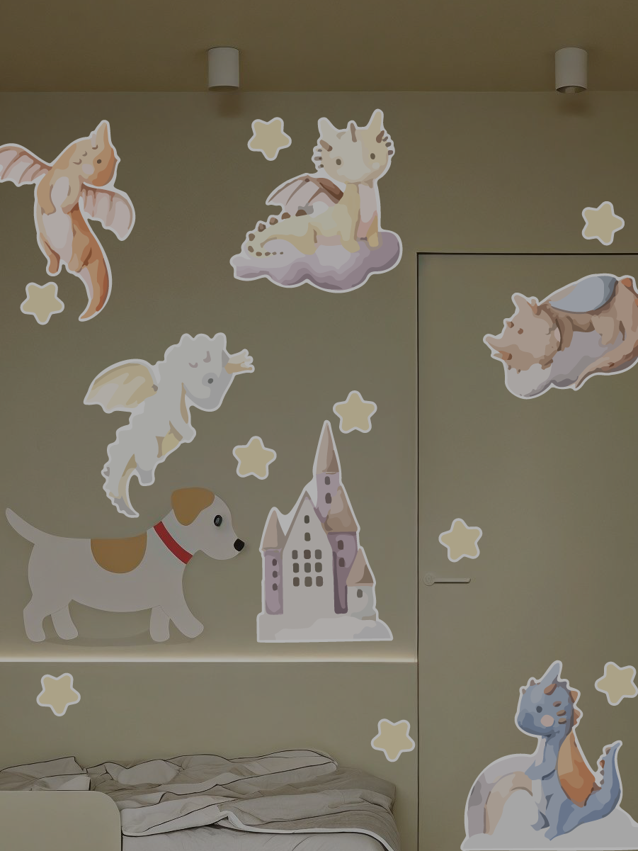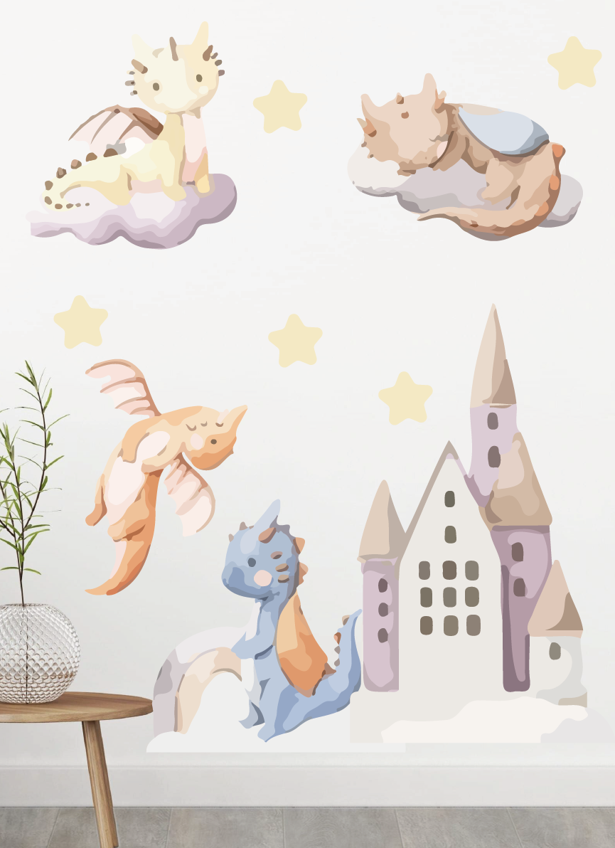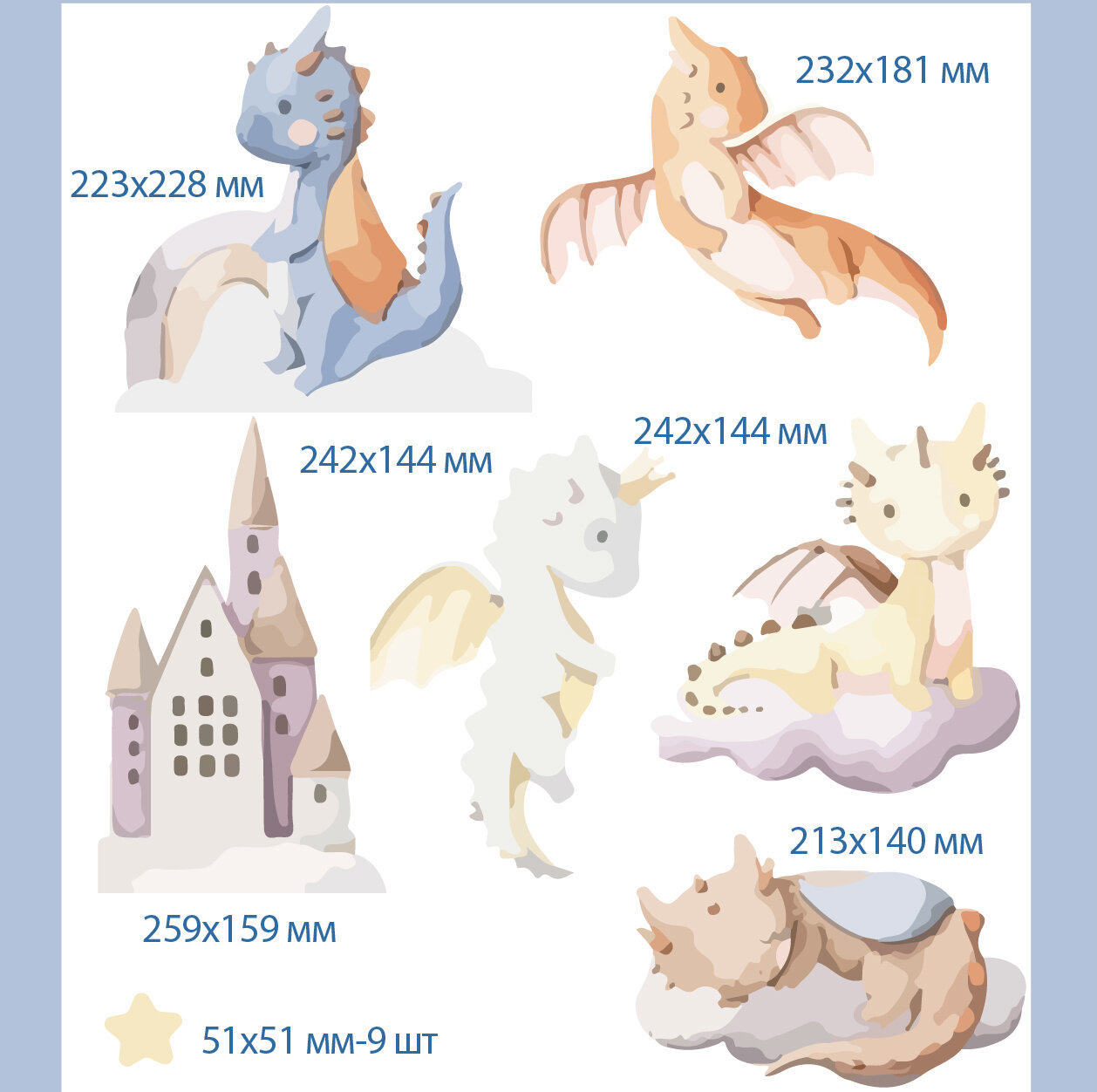 Купить Большая интерьерная наклейка на стену в детскую / спальню / игровую драконы