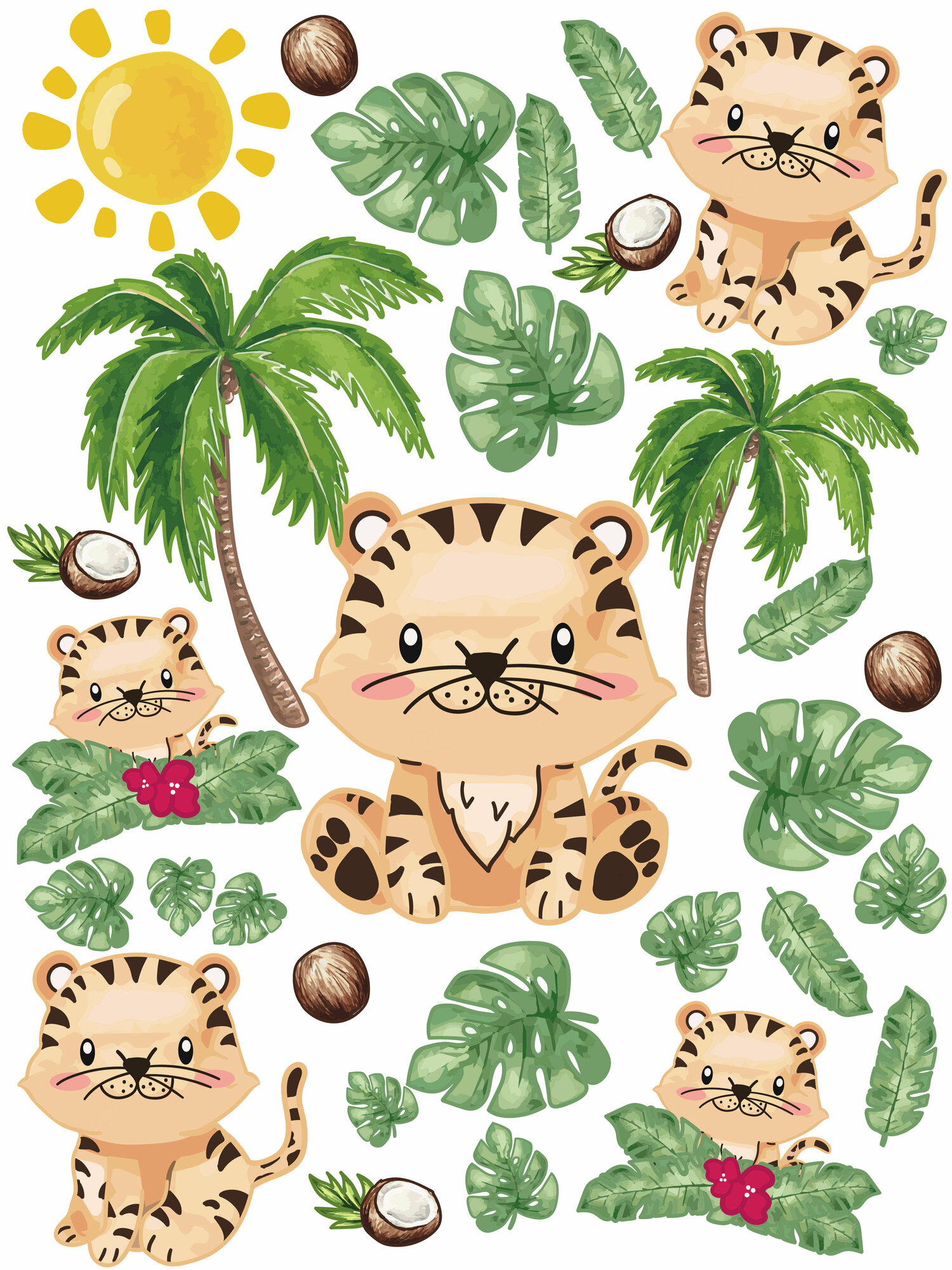 Купить Детские наклейки для декора стен Тигренок под пальмами