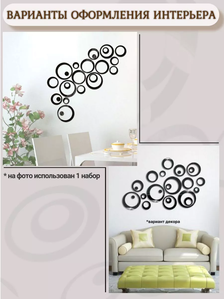 Купить Наклейка интерьерная на стену зеркальная INFINITY интерьер, Круги черные 1+1=3