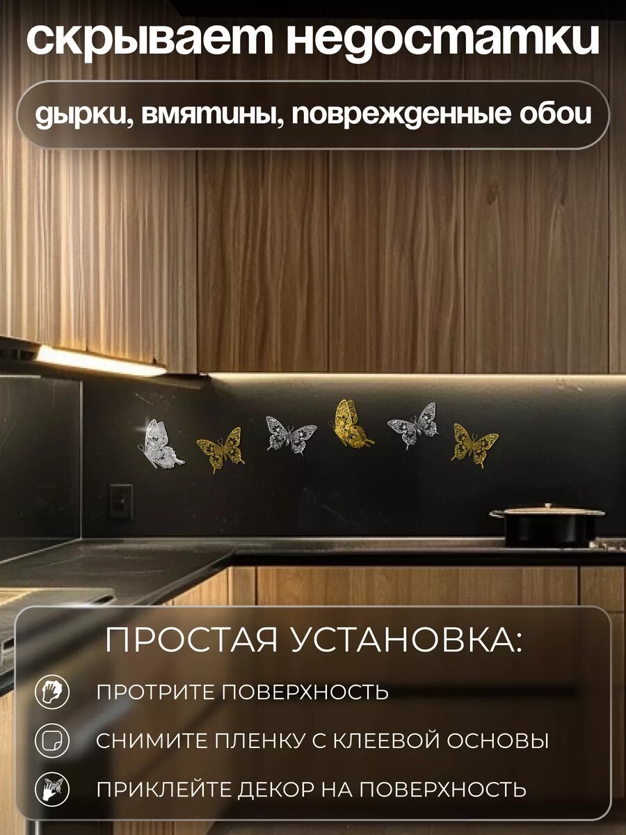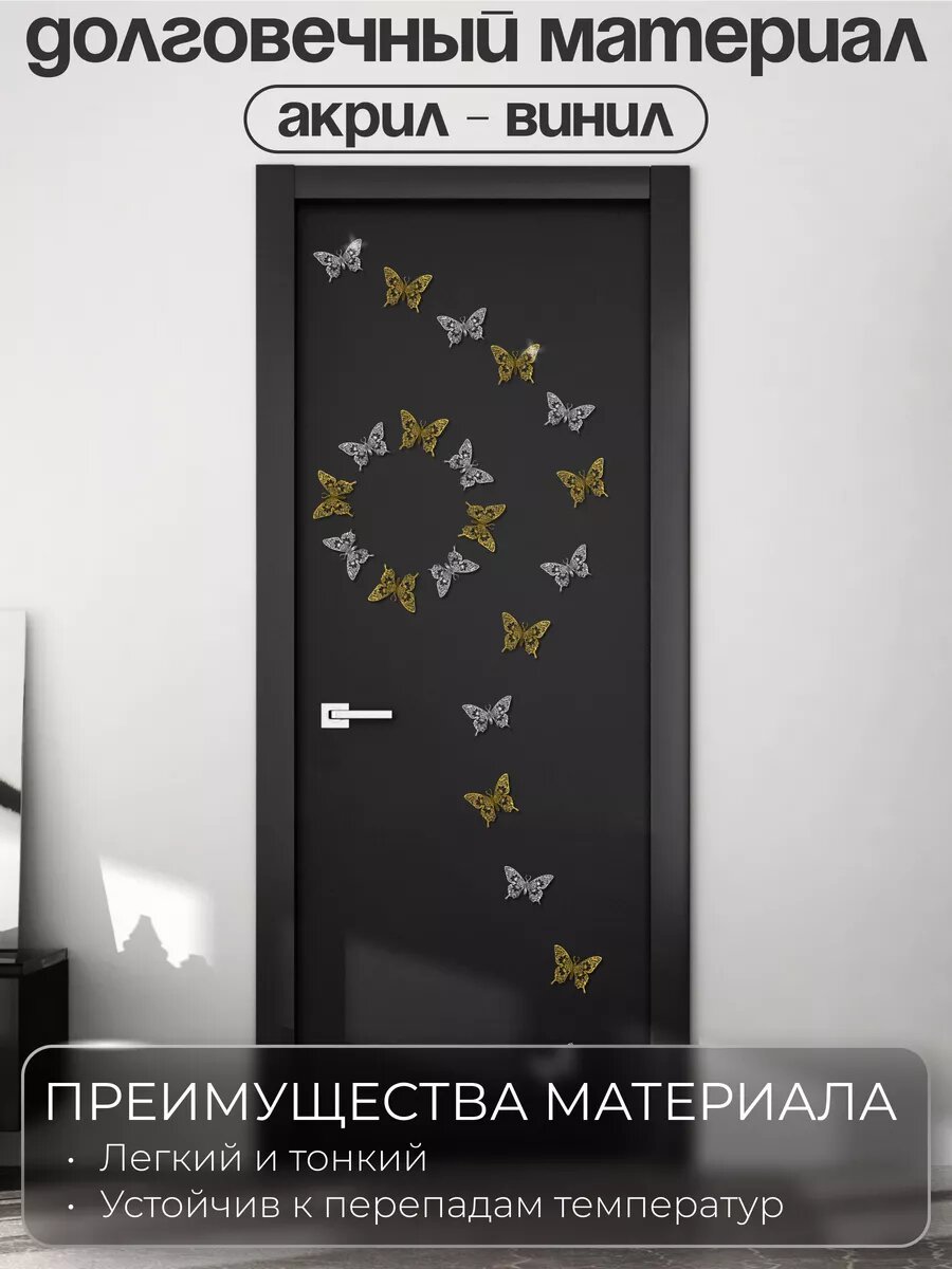 СохранитьНаклейка интерьерная INFINITY интерьер, декор на стену Бабочки серебристые интересное: