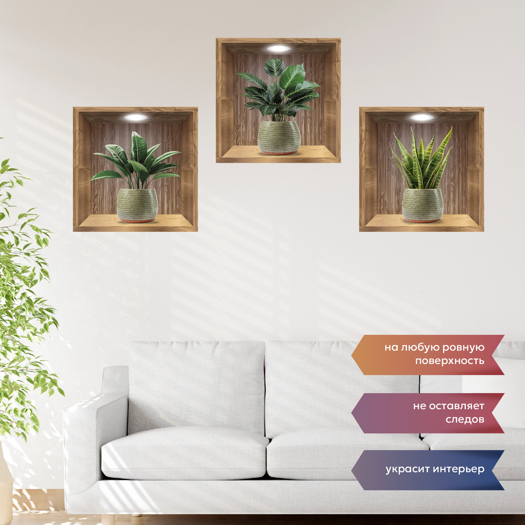 Набор интерьерные декоративные наклейки комнатные цветы 3 штуки