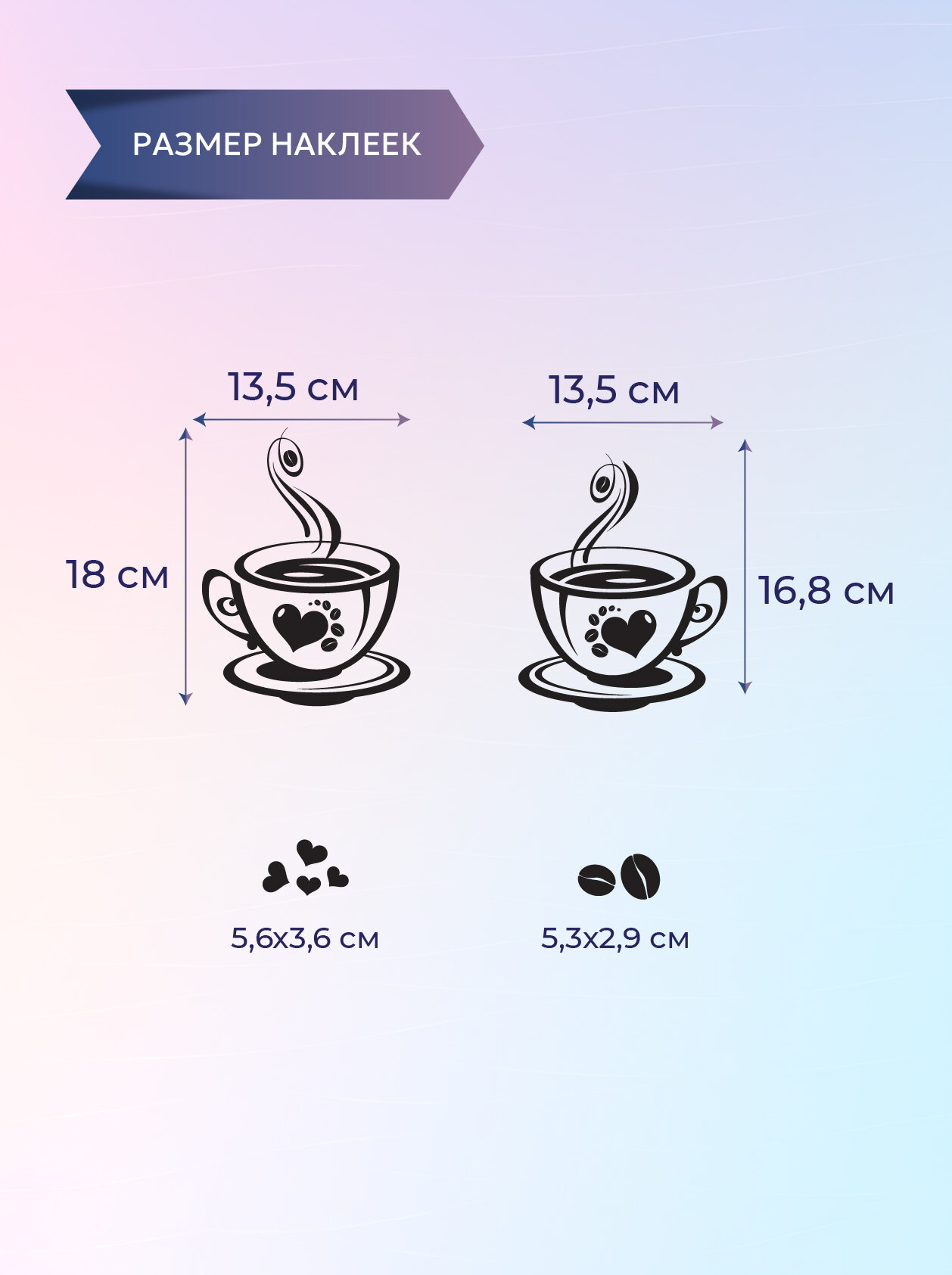 Купить Наклейка декоративная на стену - пара кофейных чашек для кухни на фартук, на плитку, на фасад шкафа, на холодильник