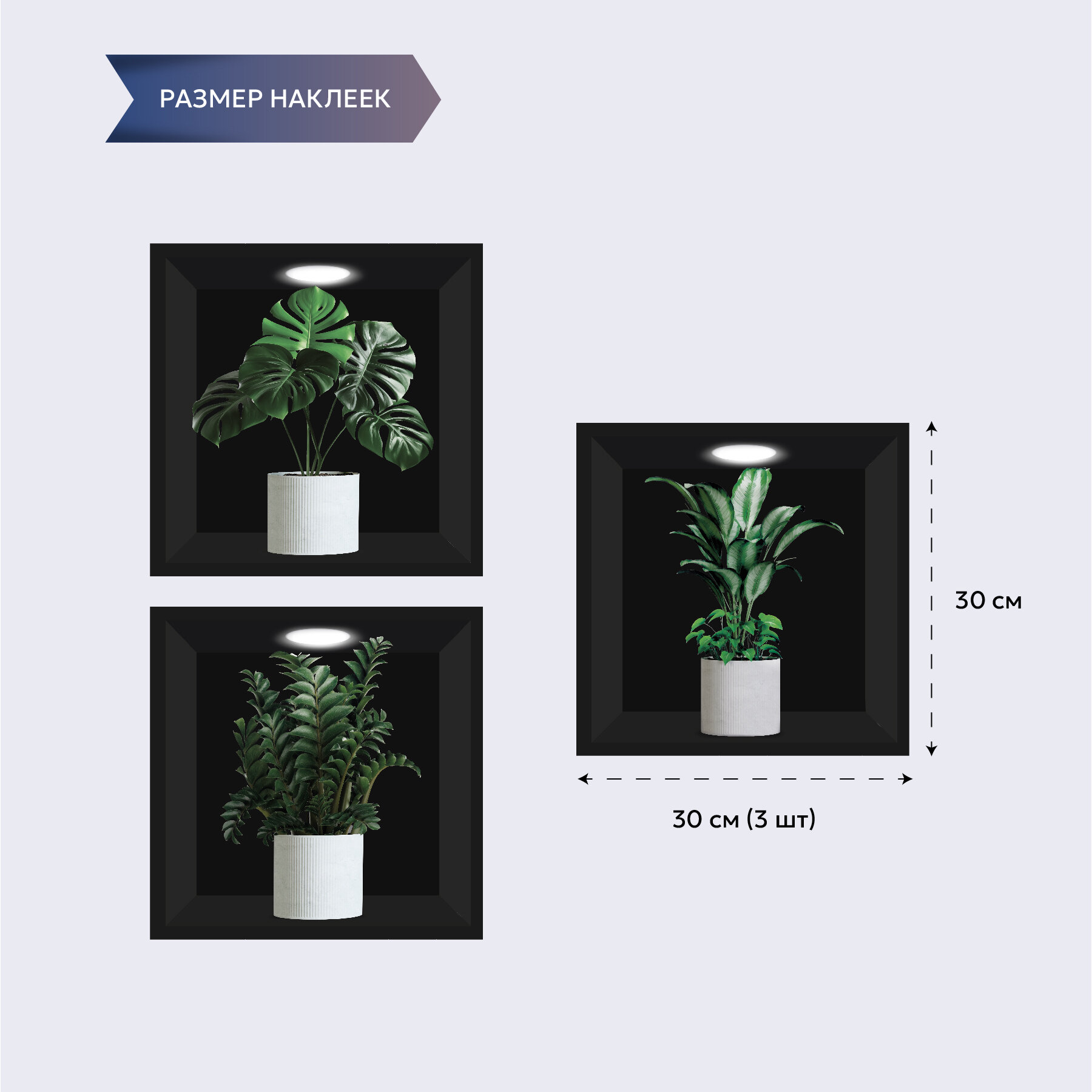 Интерьерные наклейки UND Цветы в горшках, 3 штуки в комплекте, длина 50, ширина 30
