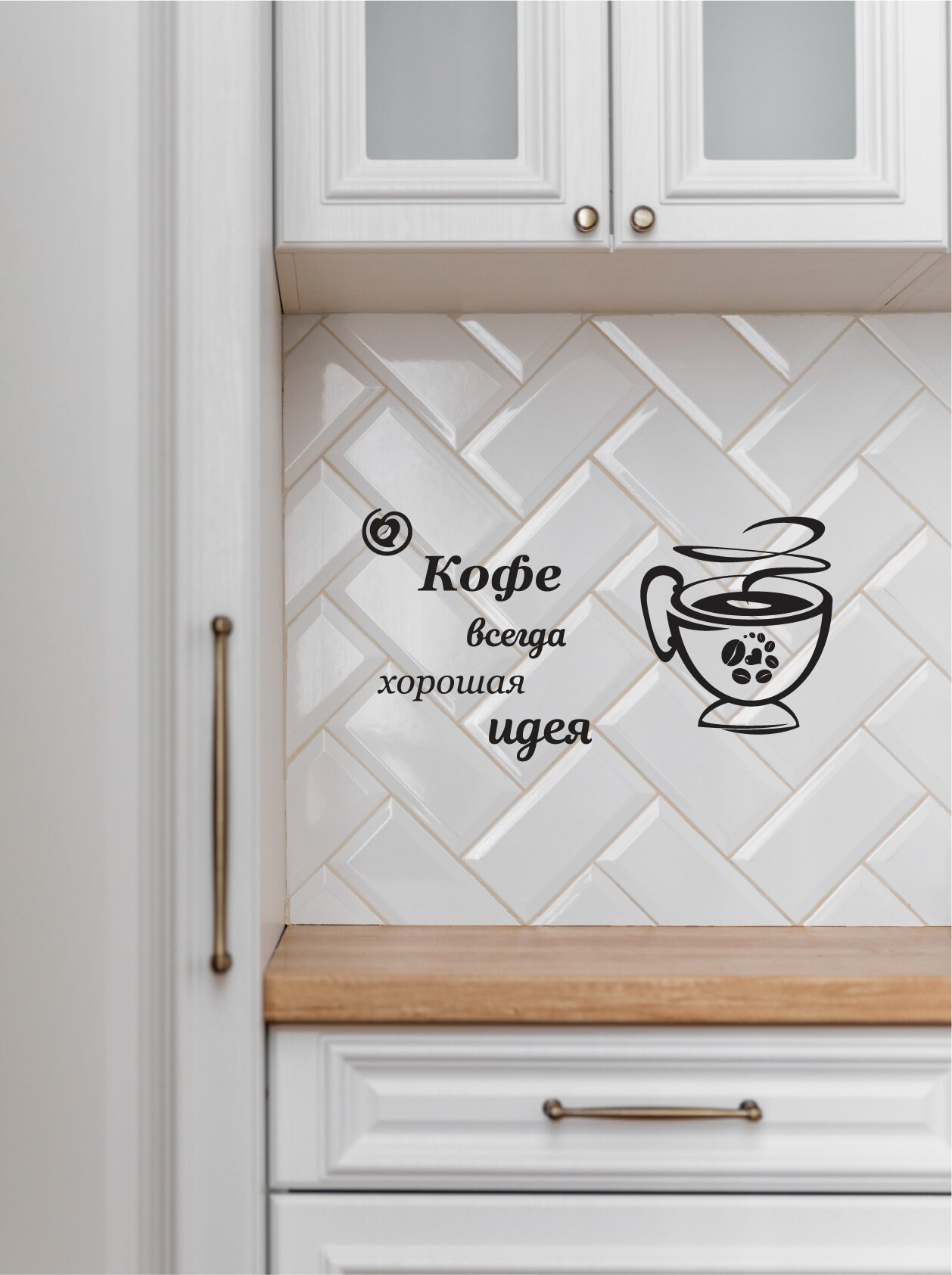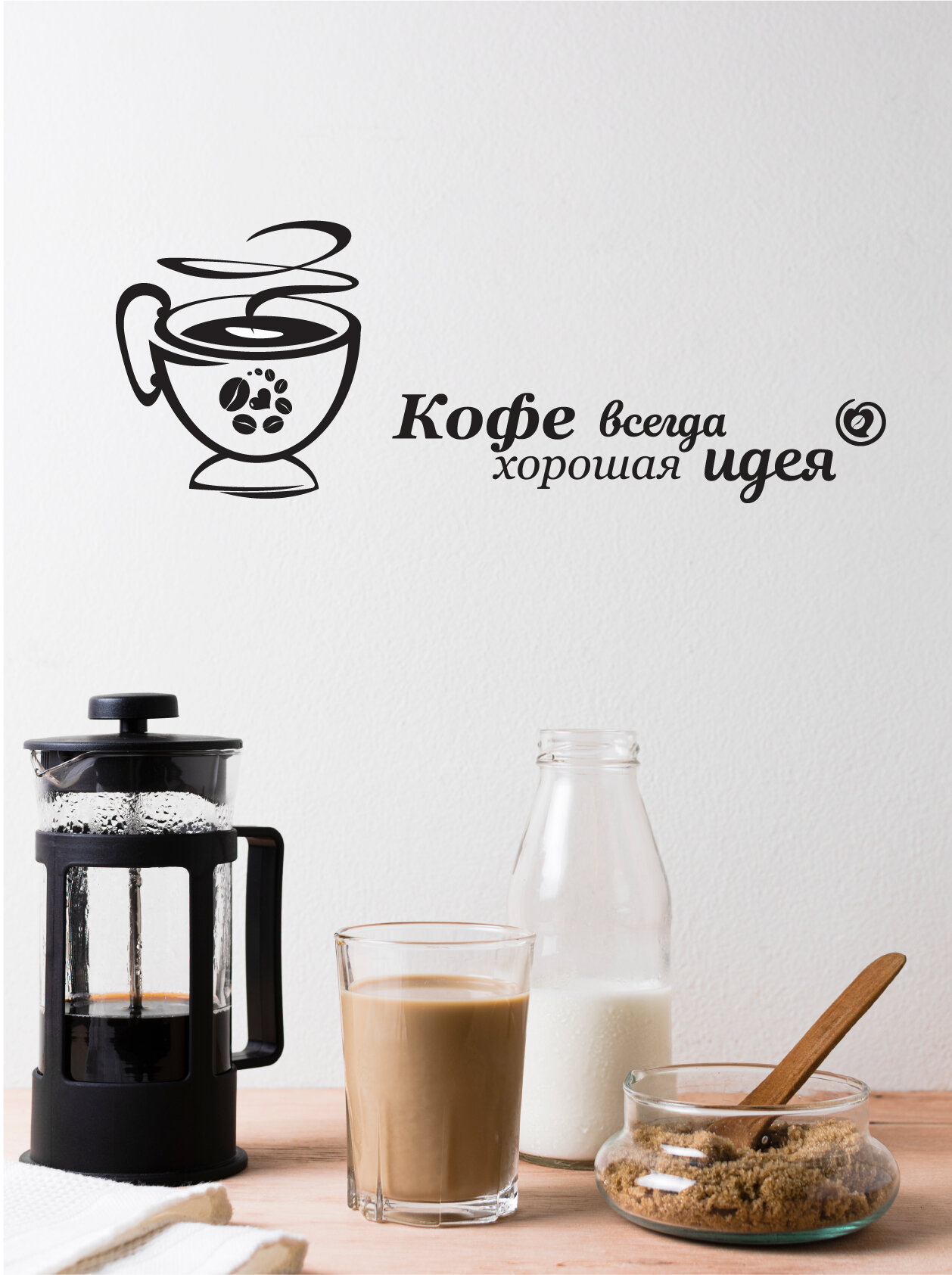 СохранитьНаклейка черная надпись для декора на кухню кофе всегда хорошая идея интересное: