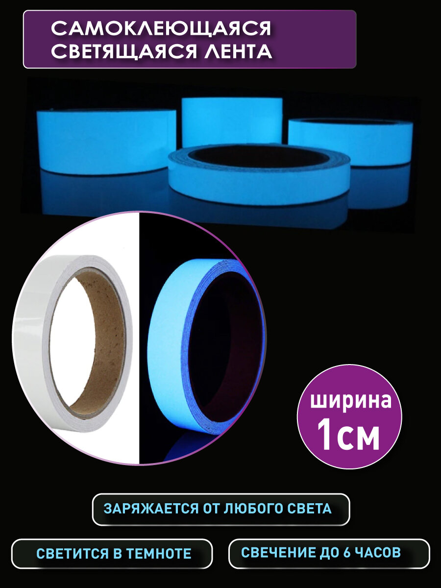 OlLena / Самоклеющаяся синяя светящаяся лента, люминесцентная лента-скотч, Светонакопительная интерьерная наклейка - 3 м интересное: