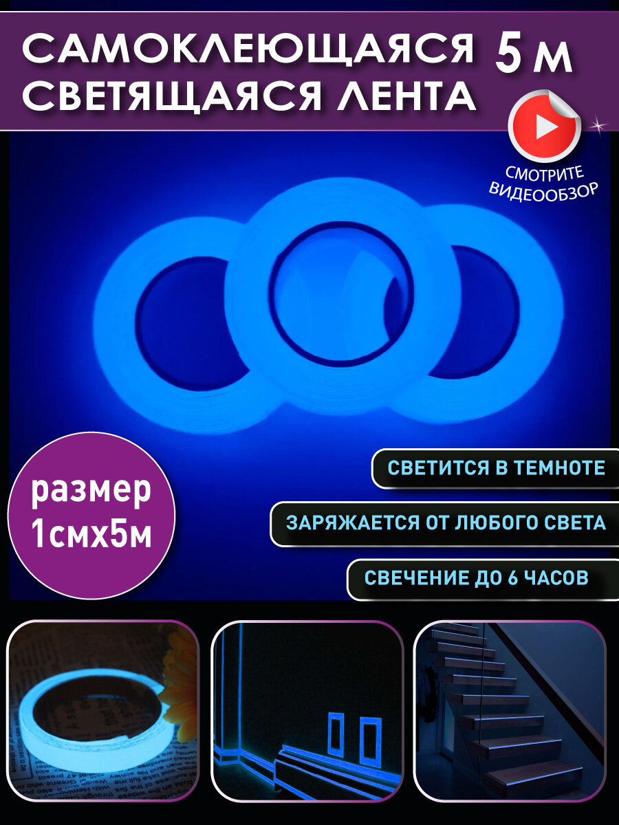 OlLena / Самоклеющаяся синяя светящаяся лента, люминесцентная лента-скотч, Светонакопительная интерьерная наклейка - 5 м интересное: