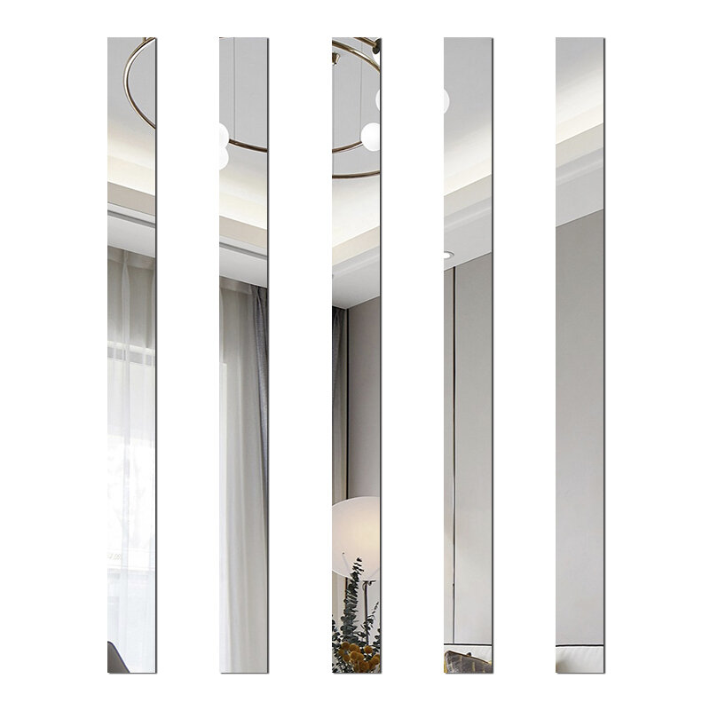 Купить Наклейка на стену "Акриловая зеркальная", самоклеящаяся, 3D, серебристая, 100x2 см, 5 шт.