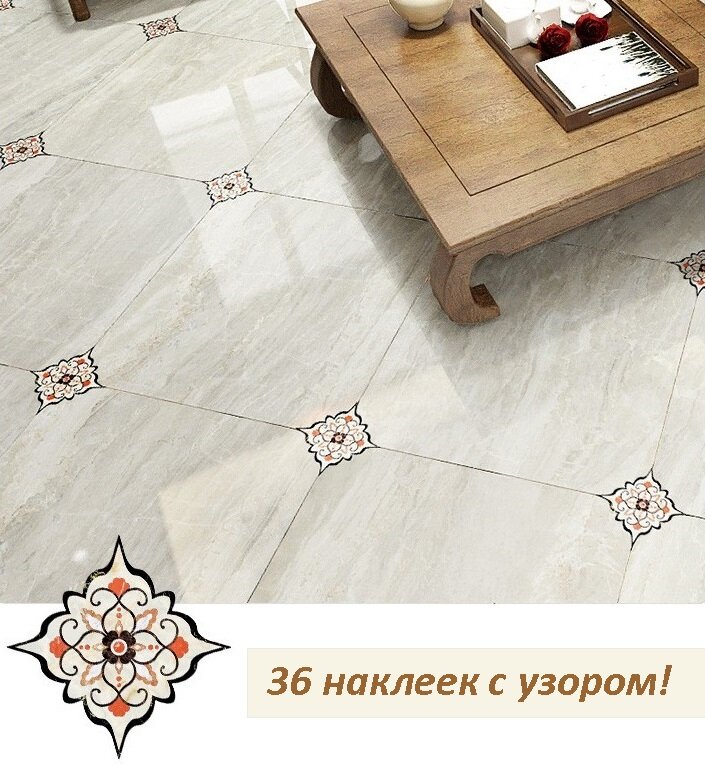 Самоклеящиеся декоративные наклейки с узором на плитку. Обои/пленка цветная самоклеящаяся декоративная, 36 шт. Тип рисунка - "001".