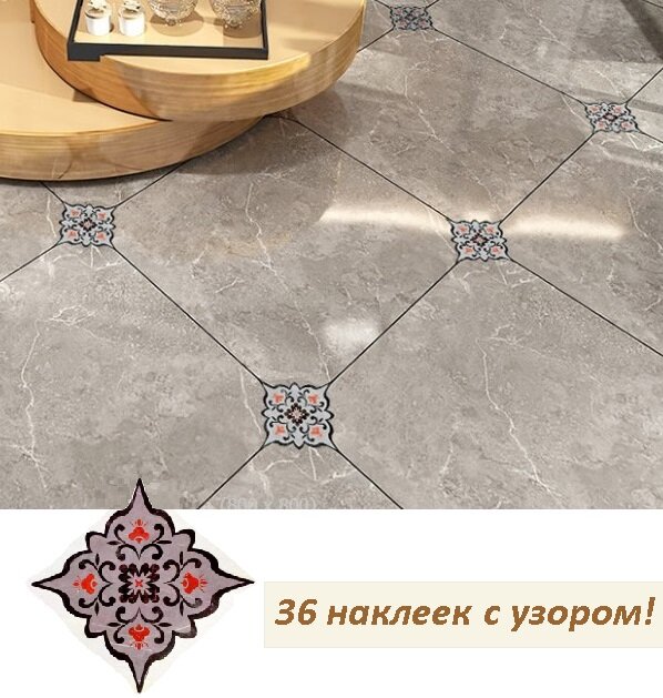 Самоклеящиеся декоративные наклейки с узором на плитку. Обои/пленка цветная самоклеящаяся декоративная, 36 шт. Тип рисунка - "001".